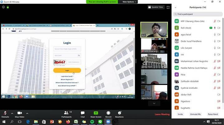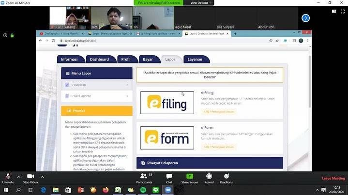 KPP Pratama Cikarang Utara memberikan edukasi mengenai Tata Cara Pelaporan SPT Tahunan melalui e-Filing dengan menggunakan aplikasi telekonferensi Zoom Meeting dan fitur Live di akun instagram KPP Pratama Cikarang Utara (Senin, 20/4).