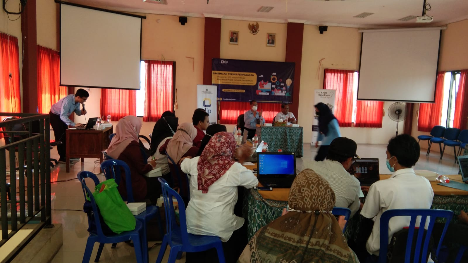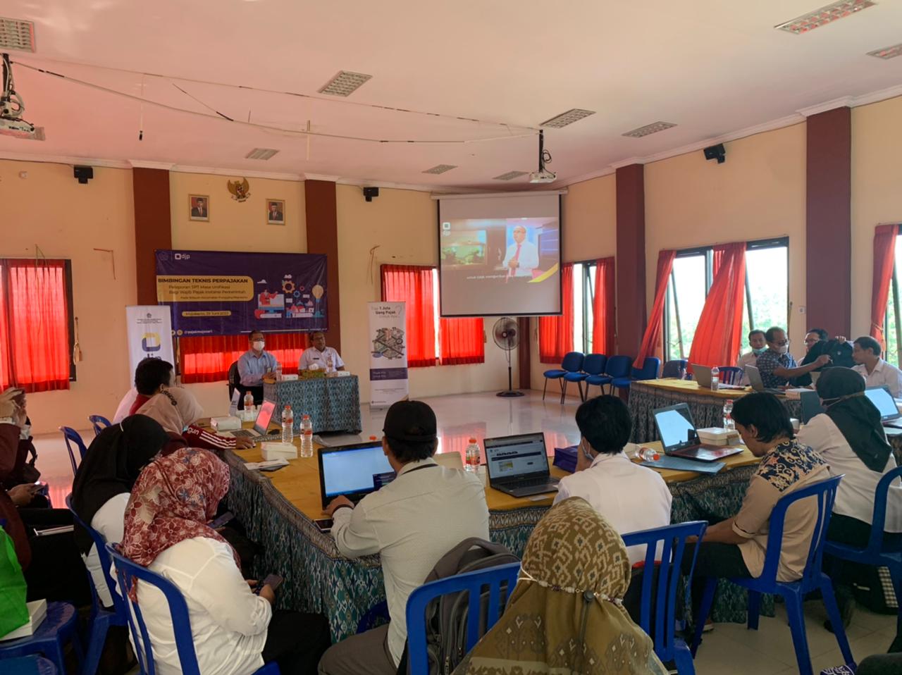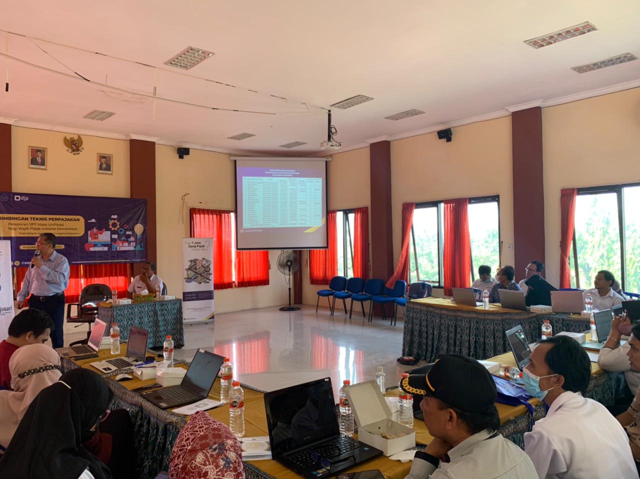 Kantor Pelayanan, Penyuluhan, dan Konsultasi Perpajakan (KP2KP) Mojosari mengadakan Bimbingan Teknis Perpajakan Pelaporan Surat Pemberitahuan (SPT) Masa Unifikasi bagi wajib pajak instansi pemerintah desa di wilayah Kecamatan Pungging (Rabu, 29/6). Kegiatan yang dilaksanakan di Aula Kantor Kecamatan Pungging ini diikuti oleh 19 instansi pemerintah desa.