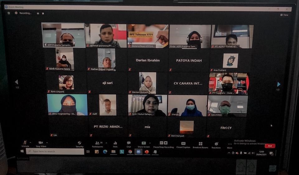 Sebanyak dua puluh Wajib Pajak Badan mengikuti kelas pajak Edukasi Tata Cara Pelaporan Surat Pemberitahuan (SPT) Tahunan untuk Wajib Pajak Badan yang diadakan oleh Kantor Pelayanan Pajak (KPP) Pratama Samarinda Ilir secara daring melalui Aplikasi Zoom Cloud Meetings di Kota Samarinda (Kamis, 29/4). Kelas pajak ini diadakan karena batas waktu pelaporan SPT Tahunan Badan semakin dekat dan untuk meningkatkan kepatuhan wajib pajak.