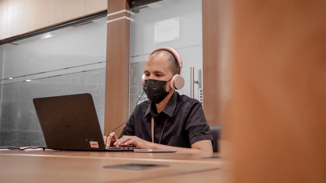 Muhammad Ihsan Ahmad Fungsional Penyuluh KPP Pratama Samarinda Ilir sebagai narasumber menyampaikan teknis pelaporan SPT Tahunan untuk Wajib Pajak Badan.