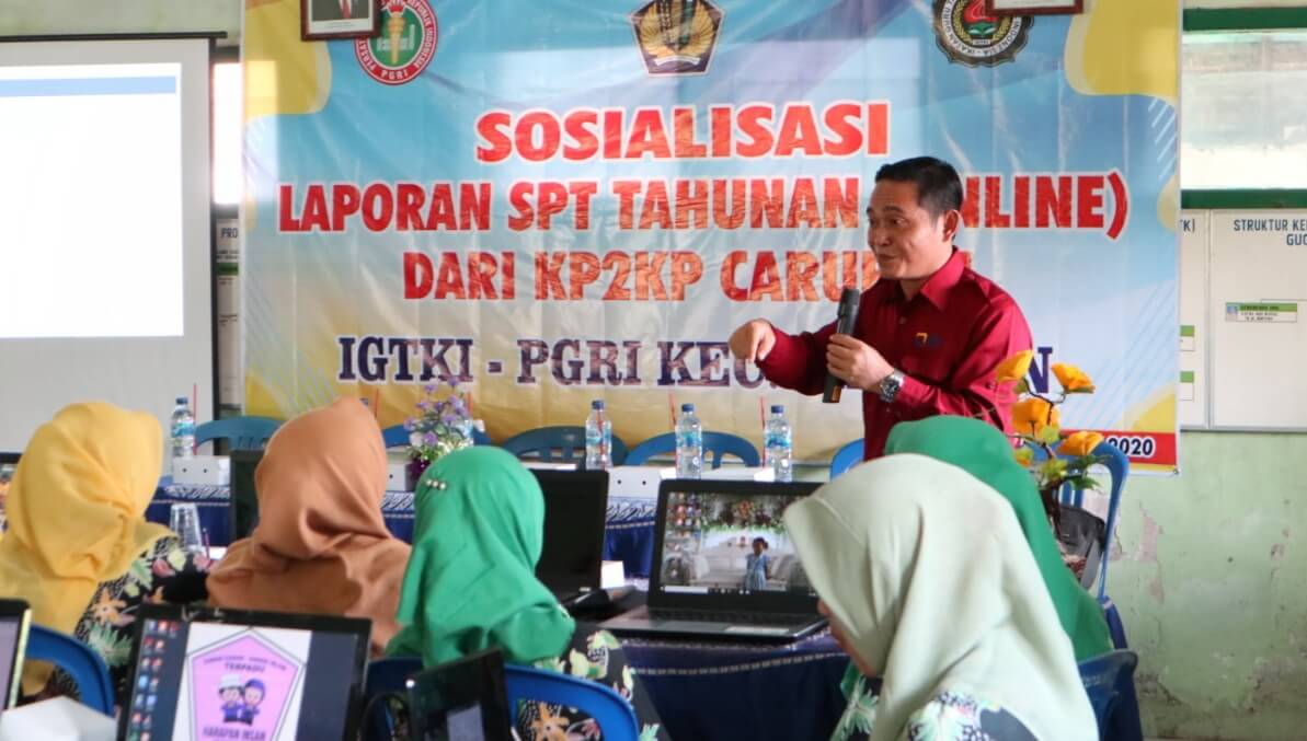 Sebanyak 24 bendahara yang tergabung dalam Ikatan Guru Taman Kanak-Kanak Indonesia (IGTKI) - PGRI Mejayan telah menuntaskan kewajiban pelaporan SPT Tahunan Badan dalam kegiatan sosialisasi yang diadakan oleh KP2KP Caruban (Kamis, 27/2). Acara berlangsung di aula TK N Pembina Mejayan dengan mengundang dua orang Account Representative (AR) KPP Pratama Madiun sebagai petugas penyuluh.