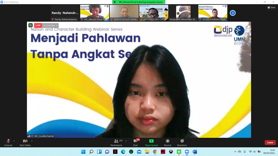 Acara dibuka dengan sambutan oleh Koordinator Studi Humaniora UMN Simon P. Wenehenubun, S.S., M.M. Dilanjutkan dengan pemaparan materi oleh fungsional penyuluh Kanwil DJP Banten Agus Puji Priyono yang memaparkan tentang peran dan fungsi pajak dalam APBN, serta arti pahlawan sesungguhnya. Acara ditutup dengan sesi diskusi dan tanya jawab hingga pukul 15.00 WIB
