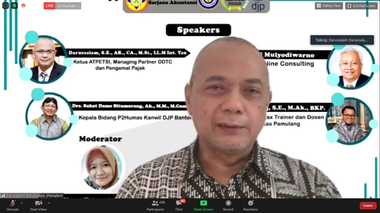 Mengusung tema "Insentif Pajak untuk Wajib Pajak Terdampak Covid-19", Kantor Wilayah DJP Banten ditampuk sebagai narasumber pada kegiatan seminar nasional secara daring bekerja sama dengan Tax Center Universitas Pamulang di Serang, Banten (Rabu, 30/9). Seminar nasional ini merupakan bagian dari rangkaian perayaan hari ulang tahun Tax Center Universitas Pamulang ke-6 yang diikuti oleh lebih dari 300 mahasiswa dan dosen dari Universitas Pamulang.