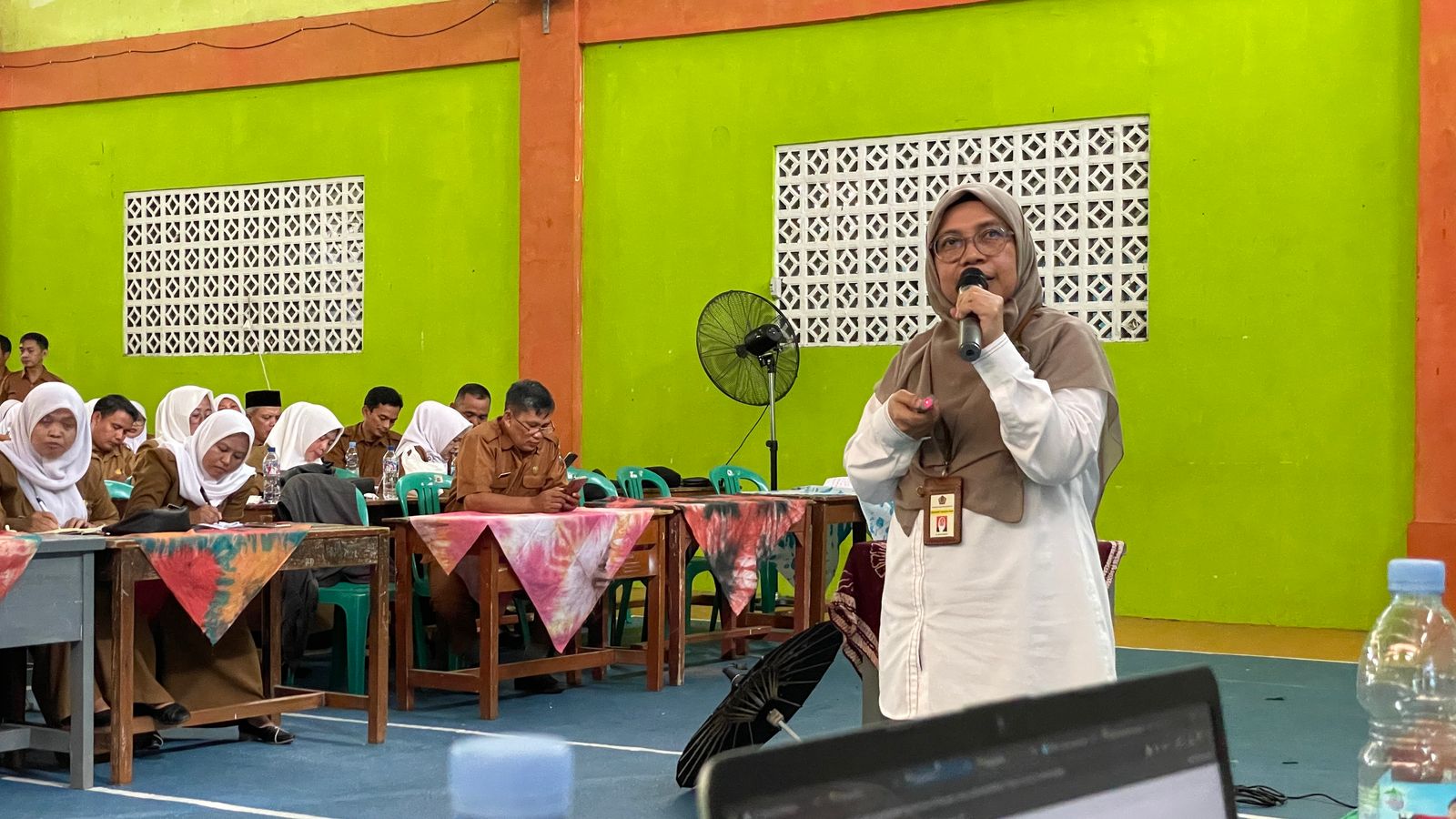 Penyuluh KPP Pratama Tasikmalaya, Fahmi Hidayat dan Ai Widiawati, menyampaikan hak dan kewajiban perpajakan bendahara satuan pendidikan selaku bagian dari pemotong dan/atau pemungut pajak.