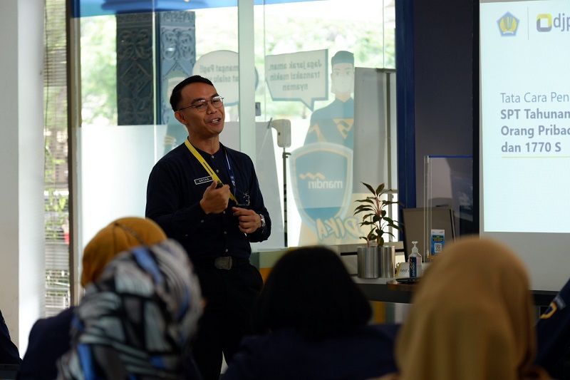 Tim Penyuluh Kantor Pelayanan Pajak (KPP) Pratama Batam Utara mengunjungi salah satu Kantor Cabang Bank Mandiri di Batam untuk melakukan sosialisasi pelaporan Surat Pemberitahuan (SPT) tahun pajak 2022 dan pemadanan Nomor Induk Kependudukan (NIK) sebagai Nomor Pokok Wajib Pajak (NPWP) (Kamis, 23/2).
