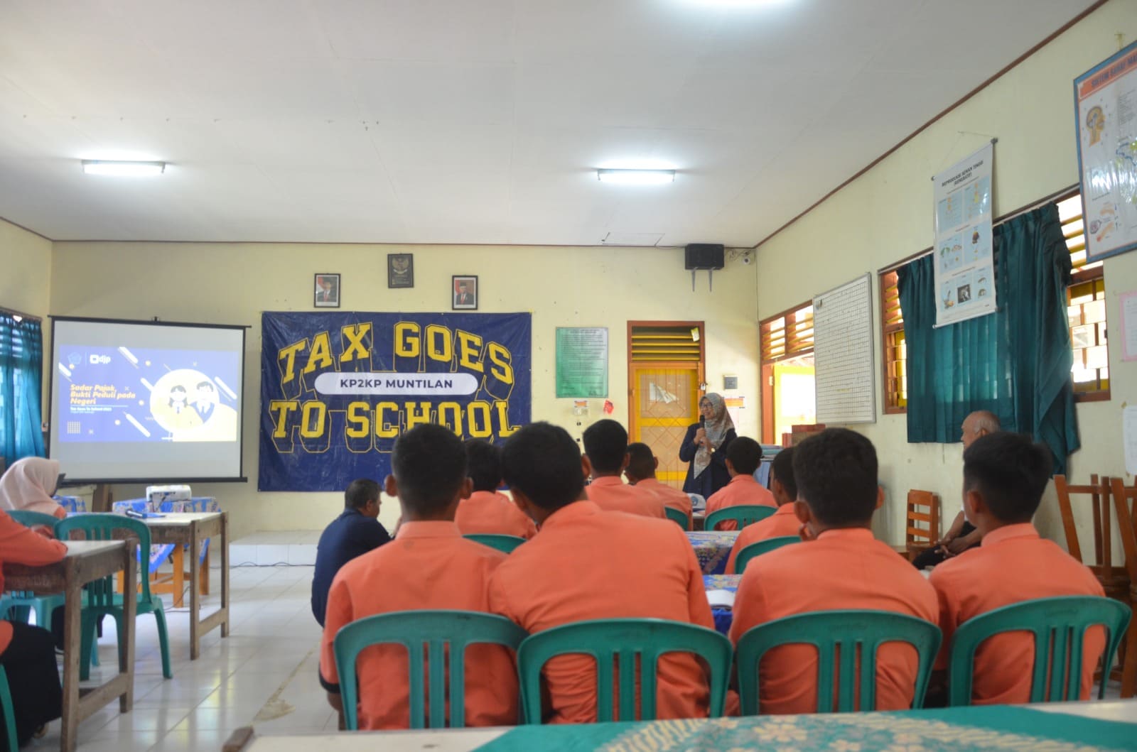 Kantor Pelayanan, Penyuluhan, dan Konsultasi Perpajakan (KP2KP) Muntilan bersama dengan SMP Negeri 2 Sawangan menyelenggarakan kegiatan Tax Goes to School 2023 secara langsung di Aula SMP Negeri 2 Sawangan, Kabupaten Magelang (Rabu, 30/8). Kegiatan ini diikuti oleh 35 siswa dan siswi dari SMP Negeri 2 Sawangan. Tema Tax Goes to School tahun ini adalah "Sadar Pajak Bukti Peduli pada Negeri".
