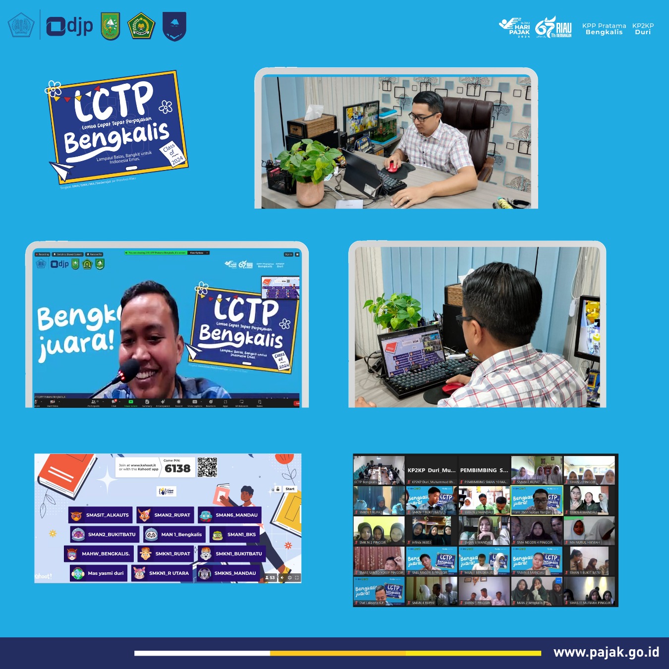 Kantor Pelayanan Pajak (KPP) Pratama Bengkalis dan Kantor Pelayanan, Penyuluhan dan Konsultasi Perpajakan (KP2KP) Duri bekerja sama dengan Kantor Cabang Dinas Pendidikan Wilayah II Bengkalis dan Kemenag Kabupaten Bengkalis terlebih dahulu mengadakan babak penyisihan LCTP di Kabupaten Bengkalis secara daring melalui aplikasi Kahoot (Selasa, 13/8).