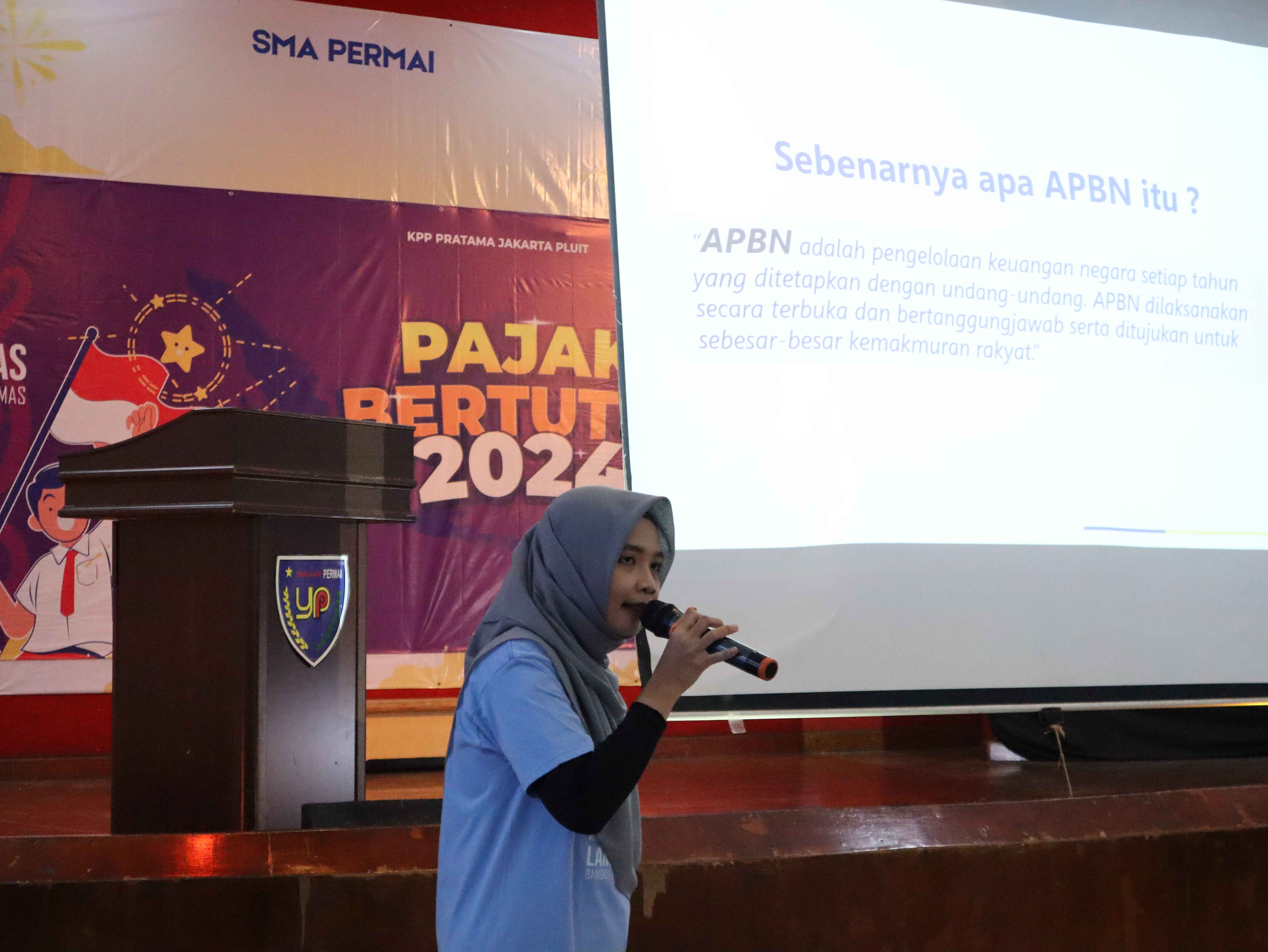Kantor Pelayanan Pajak (KPP) Pratama Jakarta Pluit menyelenggarakan kegiatan Pajak Bertutur bertempat di Sekolah Menengah Atas (SMA) Permai Jakarta (Rabu, 7/8). Kegiatan diikuti 60 peserta dan lima guru pendamping.
