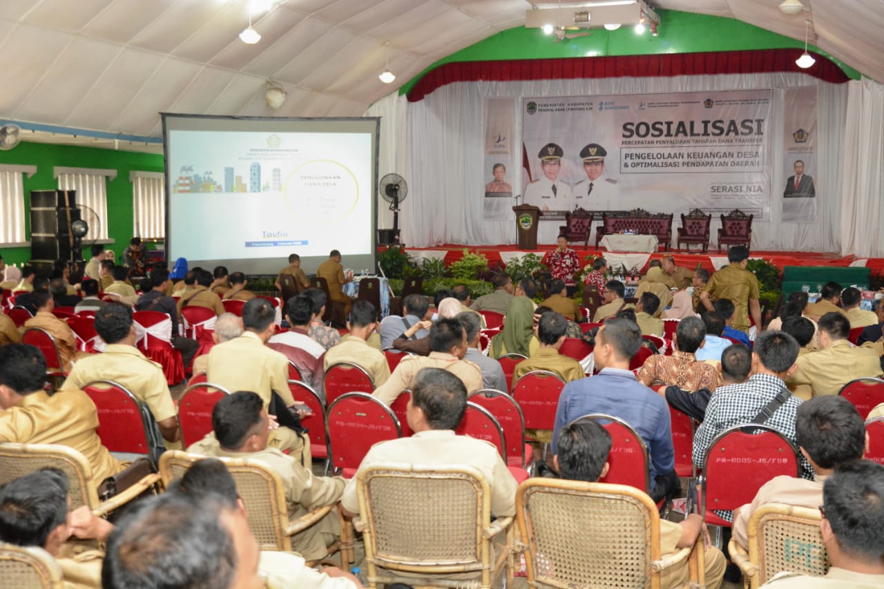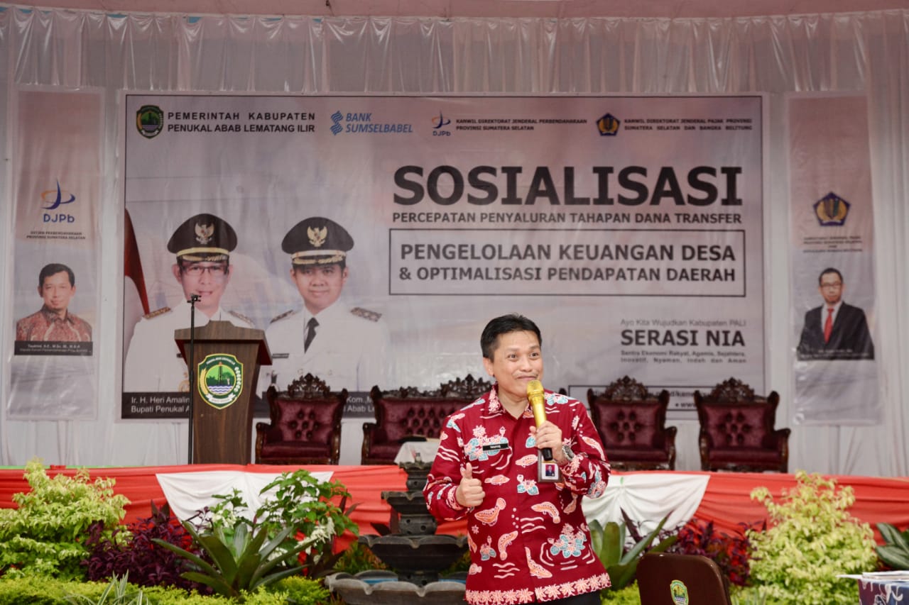 Pemerintah Kabupaten Penukal Abab Lematang Ilir menggelar sosialisasi percepatan penyaluran tahapan dana transfer, pengelolaan keuangan desa dan optimalisasi pendapatan daerah. Sosialisasi tersebut digelar di gedung PESOS, Komperta, Talang Ubi, PALI, (Selasa,18/2).