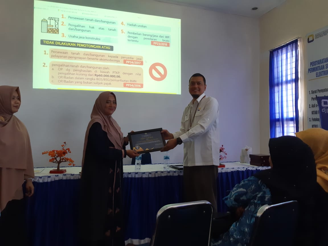 KPP Pratama Bireuen dan KP2KP Rimba Raya bekerja sama dengan Pemerintah Kabupatan Bener Meriah untuk melaksanakan kegiatan sosialisasi peraturan terbaru terkait perpajakan di aula KP2KP Rimba Raya (Kamis, 27/2). Acara ini diikuti oleh lebih dari 70 Bendahara Satuan Kerja (Satker) di lingkungan Pemkab Bener Meriah beserta operator dan staff keuangan.