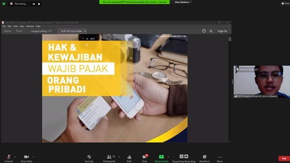 Sebanyak 70 mahasiswa Universitas Muhammadiyah Jakarta mengikuti kegiatan sosialisasi tata cara pelaporan SPT Tahunan secara daring yang diselenggarakan oleh Kanwil DJP Banten dan dibantu KPP Pratama Kosambi sebagai narasumber (Kamis, 18/2).