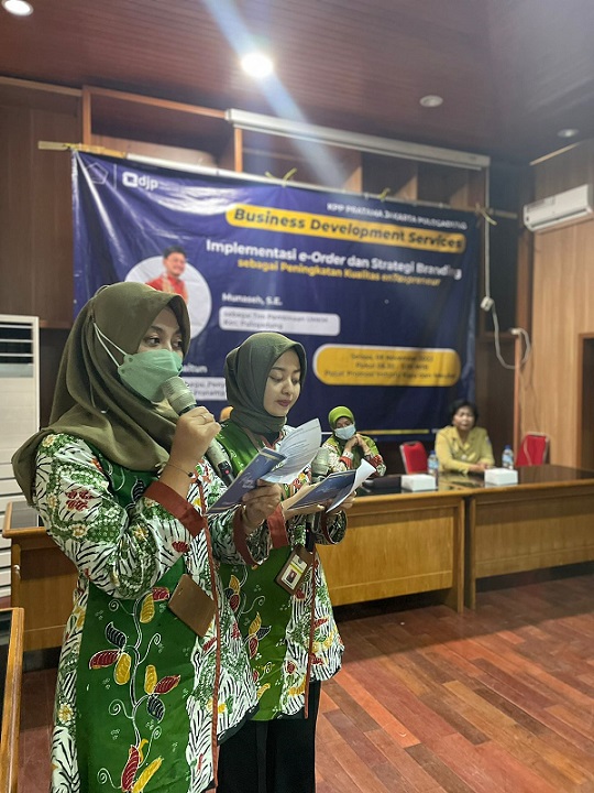 Kegiatan ini diselenggarakan dalam rangka Pemberian Edukasi dan Motivasi Pengembangan Usaha bagi wajib pajak UMKM dengan tema “Implementasi e-Order dan Strategi Branding untuk Peningkatan Kualitas enTaxpreneur" bersama dengan Tim Pembinaan UMKM Kecamatan Pulogadung .