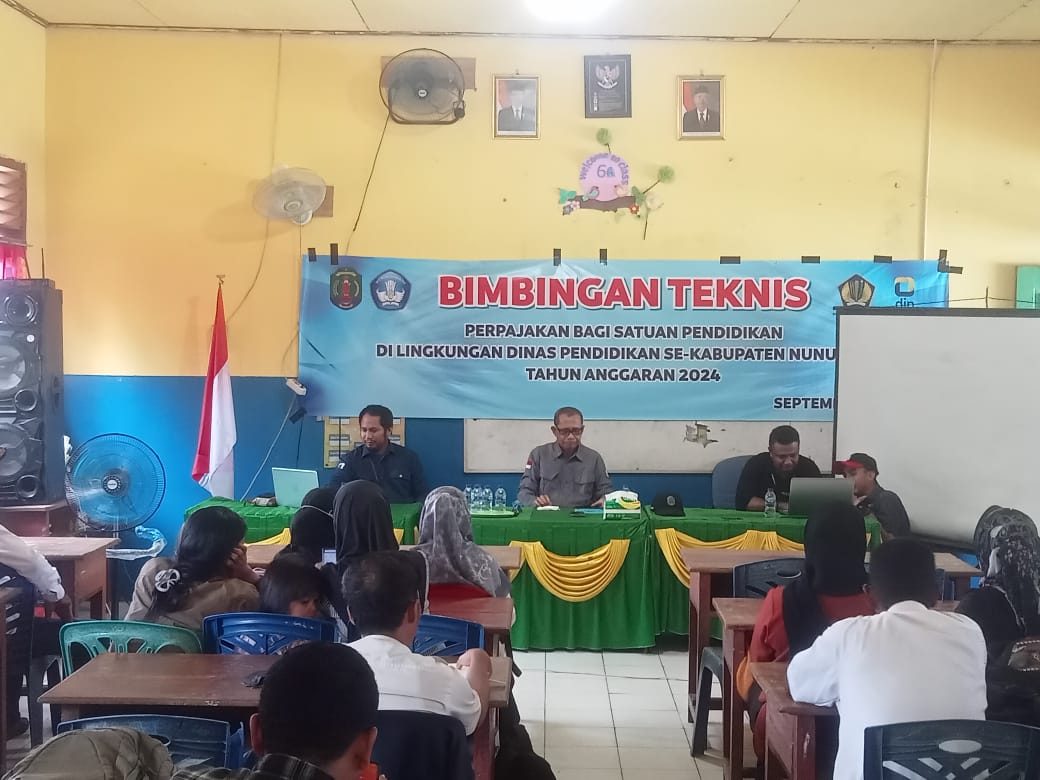 Bersama Dinas Pendidikan Kabupaten Nunukan, Kantor Pelayanan, Penyuluhan, dan Konsultasi Perpajakan (KP2KP) Nunukan menyelenggarakan bimbingan teknis (bimtek) perpajakan bagi satuan pendidikan di lingkungan dinas pendidikan Kabupaten Nunukan. Kegiatan ini berlangsung di Sekolah Dasar Negeri (SDN) 007 Tulin Onsoi, Kab. Nunukan (Rabu, 4/9). Peserta kegiatan merupakan bendahara dari SD dan SMP Negeri yang berada di Kecamatan Tulin Onsoi, Sebuku, dan Sembakung