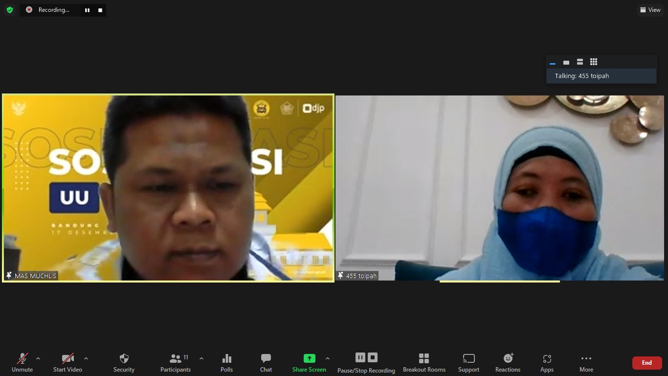 Kegiatan dilakukan melalui media Zoom Meeting. Fungsional Penyuluh KPP Pratama Cirebon dua memberikan penyuluhan tentang PPS kepada wajib pajak di Wilayah Kabupaten Cirebon. Diharapkan dari adanya kegiatan ini dapat membantu wajib pajak dalam memanfaatkan program PPS.