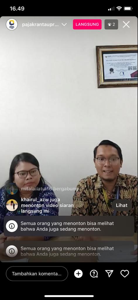 Dalam kegiatan tersebut, Khairul Azwar dan Eka Dessy Barimbing selaku Fungsional Penyuluh KPP Pratama Rantau Prapat memberikan materi perpajakan dengan judul: "Punya Utang Pajak?" kepada pengikut Instagram @pajakrantauprapat yang menyaksikan siaran langsung tersebut.