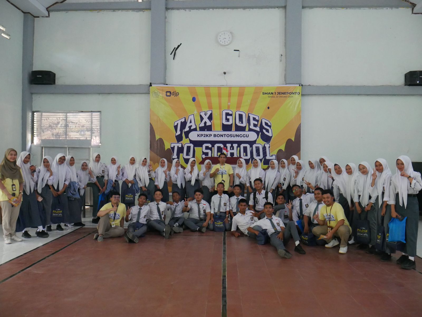 Kantor Pelayanan, Penyuluhan, dan Konsultasi Perpajakan (KP2KP) Bontosunggu bekerja sama dengan Sekolah Menengah Atas Negeri (SMAN) 1 Jeneponto menyelenggarakan program Tax Goes To School untuk meningkatkan pemahaman dan kesadaran pajak di kalangan pelajar. Kegiatan yang berlangsung di Aula SMAN 1 Jeneponto ini dihadiri oleh para siswa, guru, serta perwakilan dari KP2KP Bontosunggu (Selasa, 22/10).