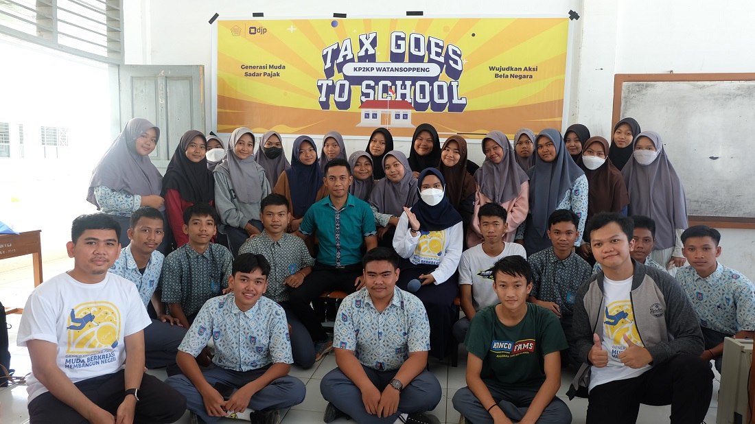 Kantor Pelayanan, Penyuluhan, dan Konsultasi Perpajakan (KP2KP) Watansoppeng mengenalkan pajak kepada siswa-siswi SMKN 3 Soppeng lewat Tax Goes To School (TGTS) di Soppeng (Rabu, 31/8). Kegiatan TGTS ini berlangsung di ruang Aula SMKN 3 Soppeng yang dihadiri 30 siswa-siswi SMKN 3 Soppeng.