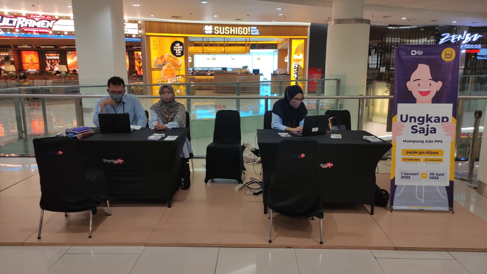 Kantor Pelayanan Pajak (KPP) Pratama Jakarta Penjaringan membuka Pojok Pajak terkait Pengungkapan Pajak Sukarela (PPS) berlokasi di Mall Emporium Pluit, Jakarta (Rabu, 8/6). Pojok PPS dilaksanakan pada pukul 10.00 sampai 15.00 WIB. Kegiatan mereka lakukan bertujuan untuk menjaring pengunjung mall agar mengikuti Program Pengungkapan Sukarela (PPS) yang segera berakhir tanggal 30 Juni 2022.