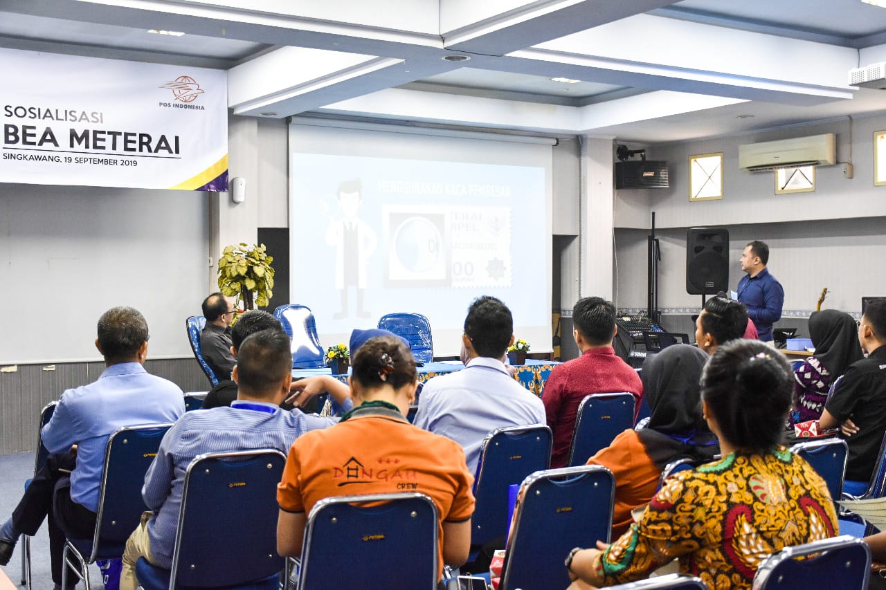 Kepala Seksi Pengawasan dan Konsultasi I Berman Paulus Marpaung dan Kepala Kantor Pos Kota Singkawang Yosia menyampaikan materi sosialisasi. Pada sosialisasi bea meterai ini, Yosia menjelaskan bahwa kantor pos menyediakan layanan pick up meterai dimana konsumen dapat dengan mudah mendapatkan meterai tempel hanya dengan menghubungi layanan kantor pos, memberitahu berapa banyak meterai yang dibutuhkan, dan meterai akan diantarkan langsung oleh petugas pos.