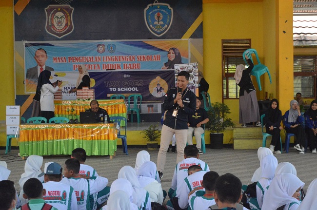 Kantor Pelayanan, Penyuluhan, dan Konsultasi Perpajakan (KP2KP) Limboto melaksanakan Tax Goes to School (TGTS) 2023 di SMAN 1 Limboto, Gorontalo (Rabu, 12/7). Bertempat di Aula SMA Negeri 1 Limboto, kegiatan ini turut bekerja sama dengan Relawan Pajak Universitas Negeri Gorontalo (UNG) dan diikuti oleh 429 siswa-siswi baru SMAN 1 Limboto.