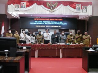 Kantor Pelayanan, Penyuluhan dan Konsultasi (KP2KP) Tanjung Selor bersama dengan Seksi Pengawasan III Kantor Pelayanan Pajak (KPP) Pratama Tanjung Redeb melaksanakan sosialisasi pemotongan Pajak Penghasilan (PPh) 21 kepada pimpinan dan anggota Dewan Perwakilan Rakyat Daerah (DPRD) Provinsi Kalimantan Utara bertempat di Ruang Rapat DPRD Provinsi Kaltara, Kabupaten Bulungan (Senin, 13/12).