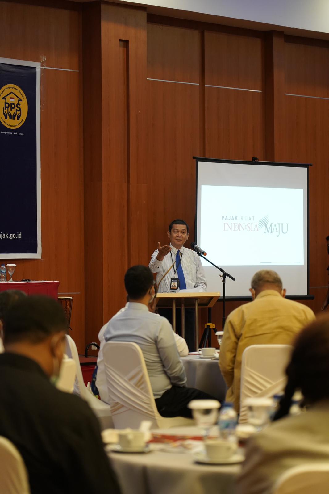 Dalam rangka memberikan pemahaman mengenai Program Pengungkapan Sukarela (PPS), Kantor Wilayah DJP Papua, Papua Barat dan Maluku (Kanwil DJP Papabrama) bersama Kamar Dagang dan Industri (Kadin) Provinsi Papua menyelenggarakan kegiatan sosialisasi Undang-Undang Harmonisasi Peraturan Perpajakan (UU HPP) dan Program Pengungkapan Sukarela di Hotel Horison Kotaraja, Kota Jayapura, Papua (Kamis, 10/3).