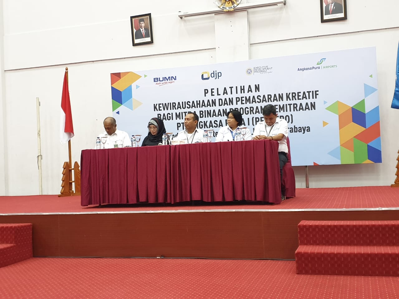 PT Angkasa Pura I (Persero) Bandar Udara Internasional Juanda Surabaya mengundang Kanwil DJP Jawa Timur II dan Executive Development Program (EDP) dari Magister Manajemen Fakultas Ekonomi Unair Surabaya dalam acara Pelatihan Kewirausahaan Bagi Mitra Binaan Program Kemitraan, bertempat di Gedung Serba Guna Graha Satu, Bandara Juanda, Surabaya (Senin, 16/12).