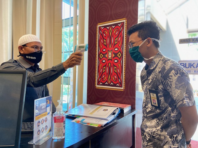Sejalan dengan upaya peningkatan kewaspadaan atas pencegahan penyebaran Corona Virus Disease 2019 (Covid-19) di lingkungan Kementerian Keuangan, Kantor Pelayanan Pajak (KPP) Madya Makassar melaksanakan langkah preventif yang diikuti oleh seluruh pegawai di Makassar (Kamis, 23/4). Langkah preventif tersebut salah satunya dengan diadakannya pengecekan suhu tubuh bagi setiap pegawai yang memiliki jadwal bekerja di kantor, langkah ini dilaksanakan secara konsisten sejak pertengahan bulan Maret 2020.