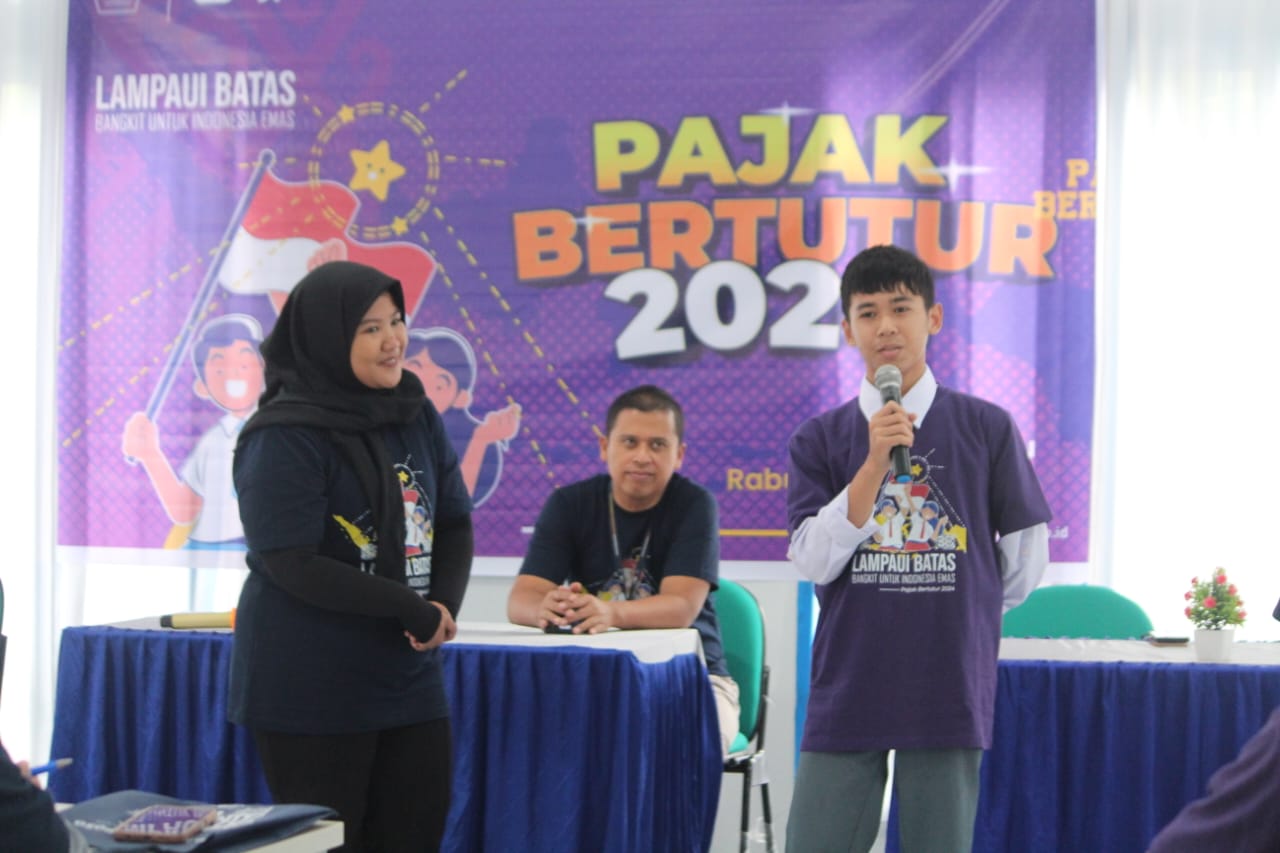 Pajak Bertutur merupakan program inklusi kesadaran pajak dalam satuan Pendidikan yang diselenggarakan secara serentak oleh Kantor Pusat Direktorat Jenderal Pajak (DJP) beserta unit vertikal DJP di seluruh wilayah Indonesia pada tanggal 7 Agustus 2024. Dengan tagline “Sehari Mengenal, Selamanya Bangga”, kegiatan Pajak Bertutur tahun 2024 mengusung tema “Lampaui Batas, Bangkit untuk Indonesia Emas”.