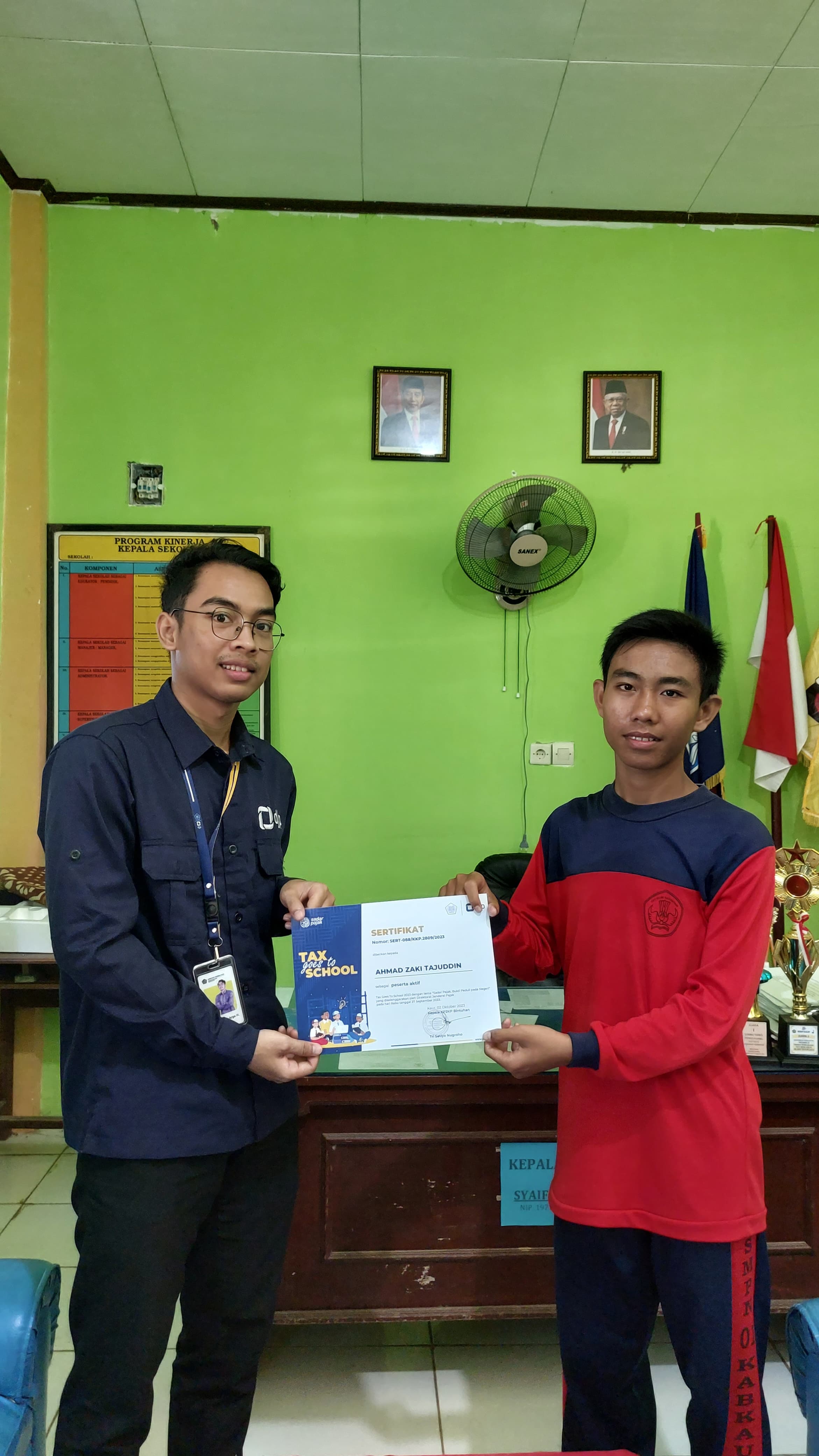 Dalam pertemuan tersebut, petugas KP2KP Bintuhan Florenstama Arga Herfiansyah dan Dwi Ardiansyah berterima kasih kepada Syaifuddin, Kepala SMP Negeri 1 Kaur, atas kerja sama dalam kegiatan "Tax Goes To School" yang diselenggarakan pada 27 September 2023.