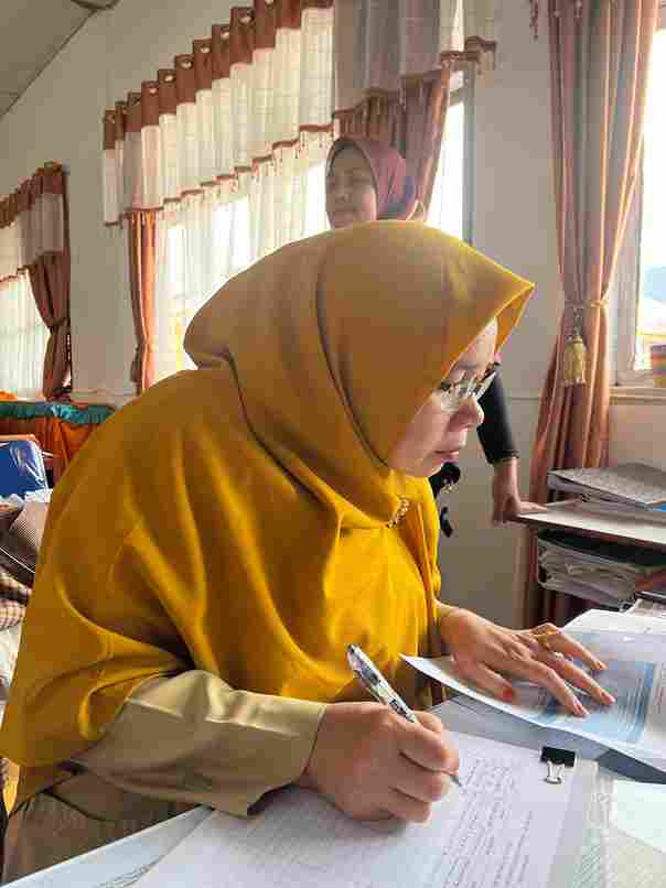 Rifqi Chorinando, selaku pegawai KP2KP Rimba Raya membantu para guru dan pegawai SMA Negeri 1 Bukit untuk melakukan pemadanan NIK menjadi NPWP dan pelaporan SPT Tahunan. Rifqi menjelaskan hal-hal apa saja yang perlu diisi pada laman www.pajak.go.id saat melakukan pemadanan NIK menjadi NPWP dan pelaporan SPT Tahunan.
