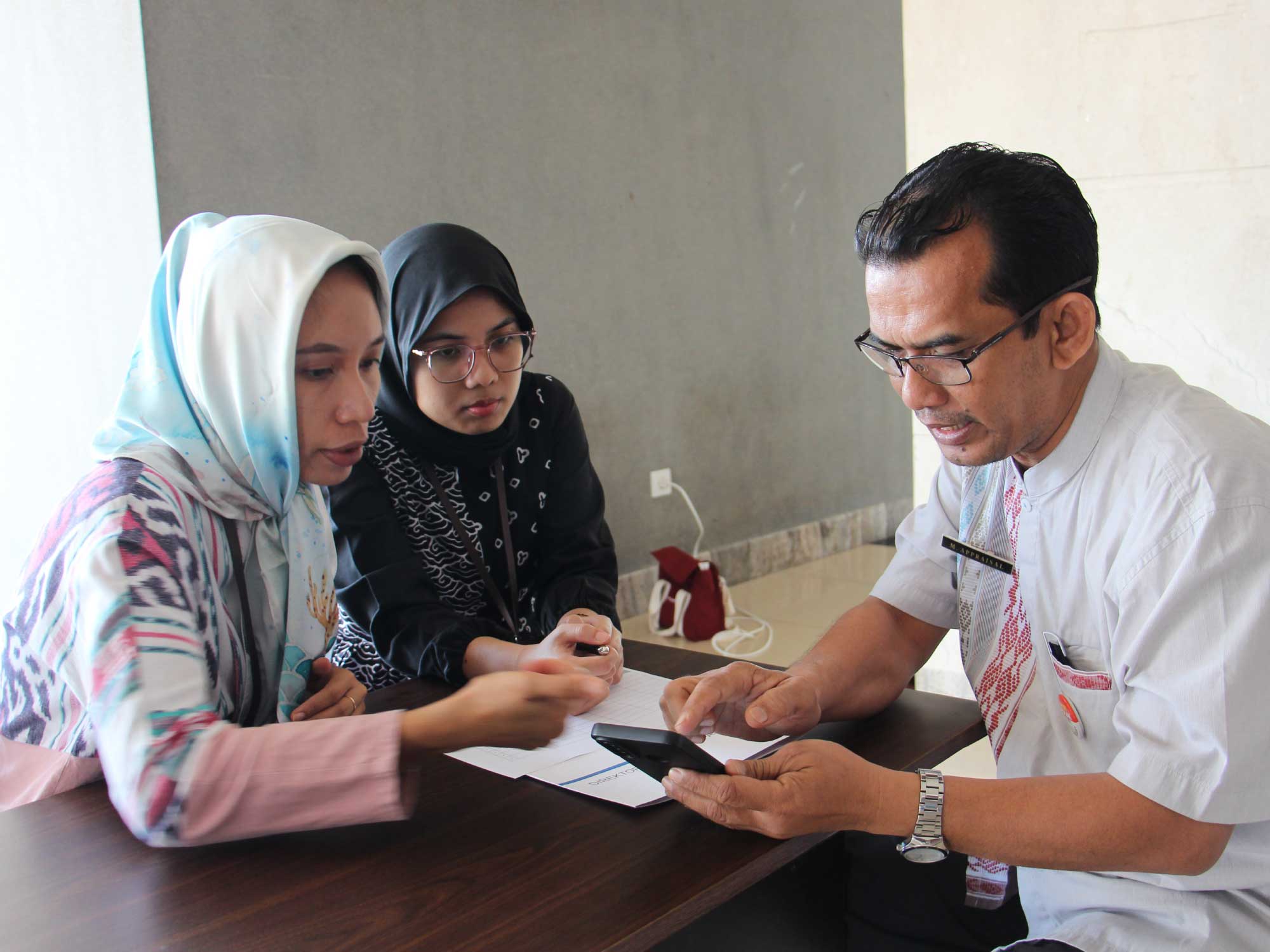 Peserta dapat melakukan konsultasi perpajakan pemadanan NIK sebagai NPWP di selasar Masjid Raya Sumbar dan langsung dipandu oleh petugas cara memadankan NIK melalui gawai masing-masing.