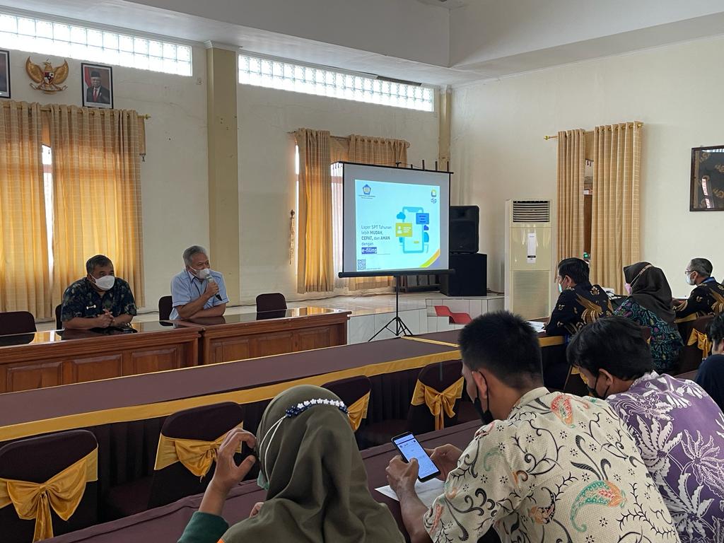 Kantor Pelayanan, Penyuluhan, dan Konsultasi Perpajakan (KP2KP) Banjar menggelar kegiatan asistensi pelaporan Surat Pemberitahuan (SPT) Tahunan Pajak Penghasilan (PPh) Orang Pribadi melalui e-Filing bagi Aparatur Sipil Negara (ASN) di lingkungan Badan Layanan Umum Daerah (BLUD) Rumah Sakit Umum Daerah (RSUD) Kota Banjar, di Aula Rapat, Jalan Rumah Sakit Umum No. 5, Hegarsari, Kec. Pataruman, Kota Banjar (Kamis, 22/9).