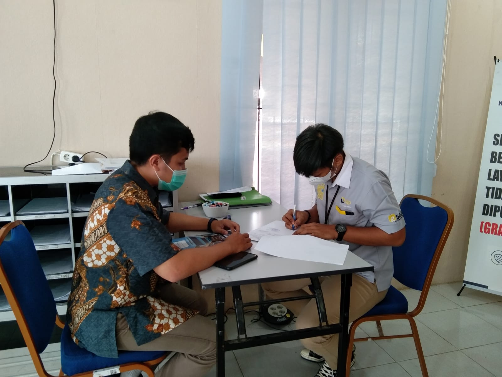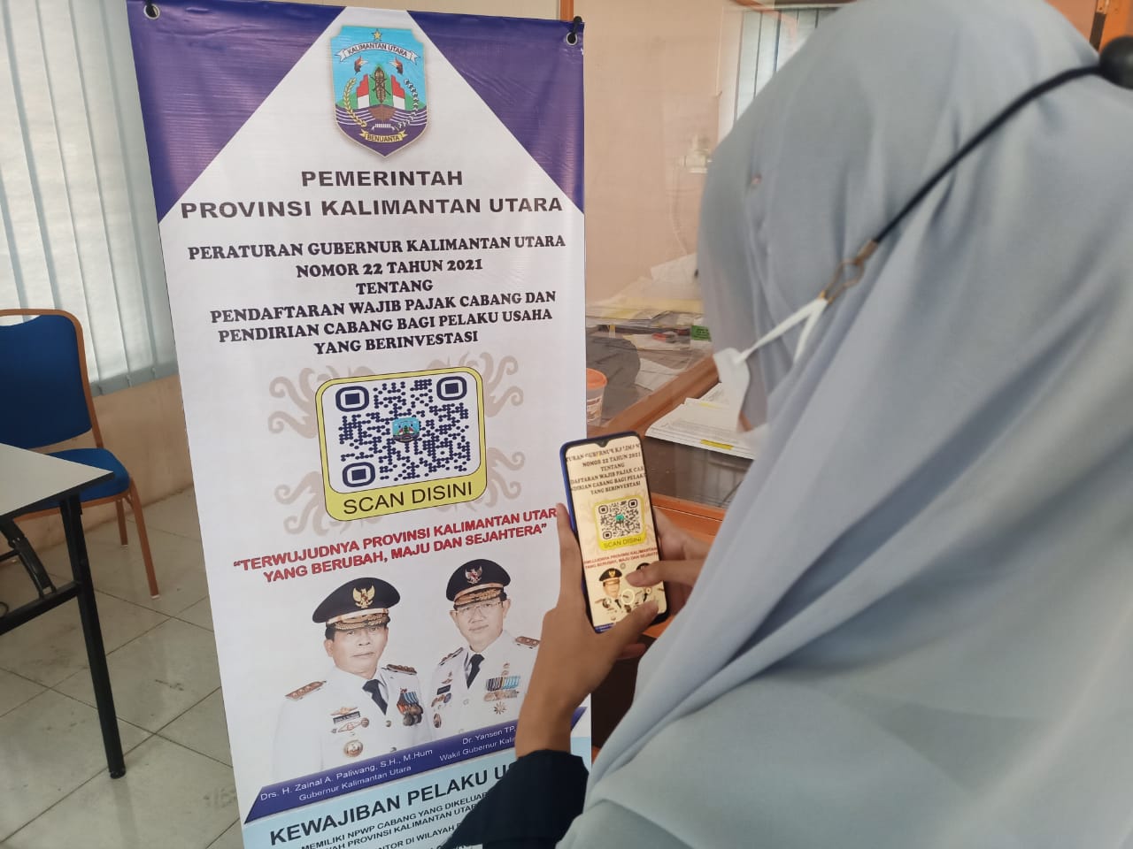DPMPTSP Kaltara juga meninggalkan banner yang dilengkapi dengan kode batang terkait peraturan tersebut.