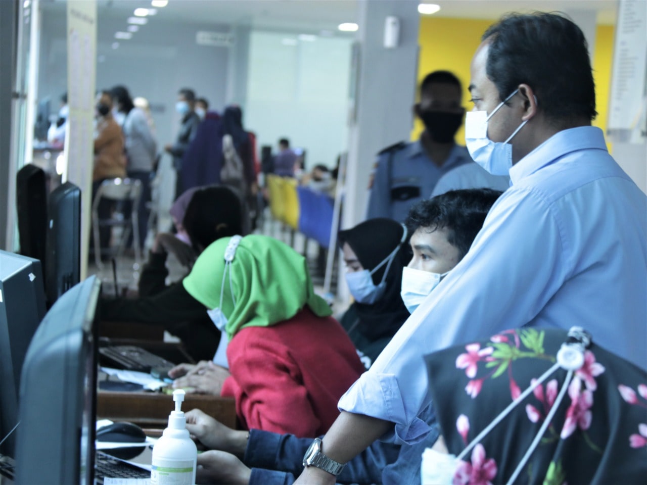 Kepala KPP Pratama Purwakarta Dedi Kurniawan memantau langsung situasi dan kondisi penerimaan SPT di aula. Beberapa Kepala Seksi dan anggota satuan tugas (satgas) SPT Tahunan juga ikut memberikan asistensi pelaporan SPT kepada wajib pajak.
