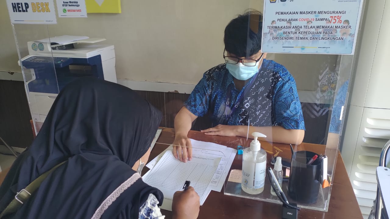 Kantor Pelayanan, Penyuluhan, dan Konsultasi Perpajakan (KP2KP) Bontosunggu melakukan kegiatan edukasi perpajakan kepada Wajib Pajak Orang Pribadi terkait pengisian Surat Pemberitahuan (SPT) Tahunan. Kegiatan ini dilaksanakan secara tatap muka di ruang konsultasi KP2KP Bontosunggu, Kabupaten Jeneponto (Jumat, 7/10).