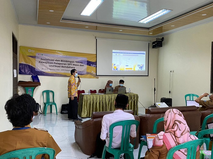 Kantor Pelayanan Pajak (KPP) Pratama Serang Timur bekerja sama dengan Kantor Kecamatan Pabuaran melaksanakan sosialisasi dan bimbingan teknis (bimtek) kepada seluruh Bendahara Pengeluaran/Kepala Urusan Keuangan Pemerintah Desa di lingkungan Kecamatan Pabuaran yang dilaksanakan di Aula Kantor Kecamatan Pabuaran, Kabupaten Serang (Selasa, 23/8).