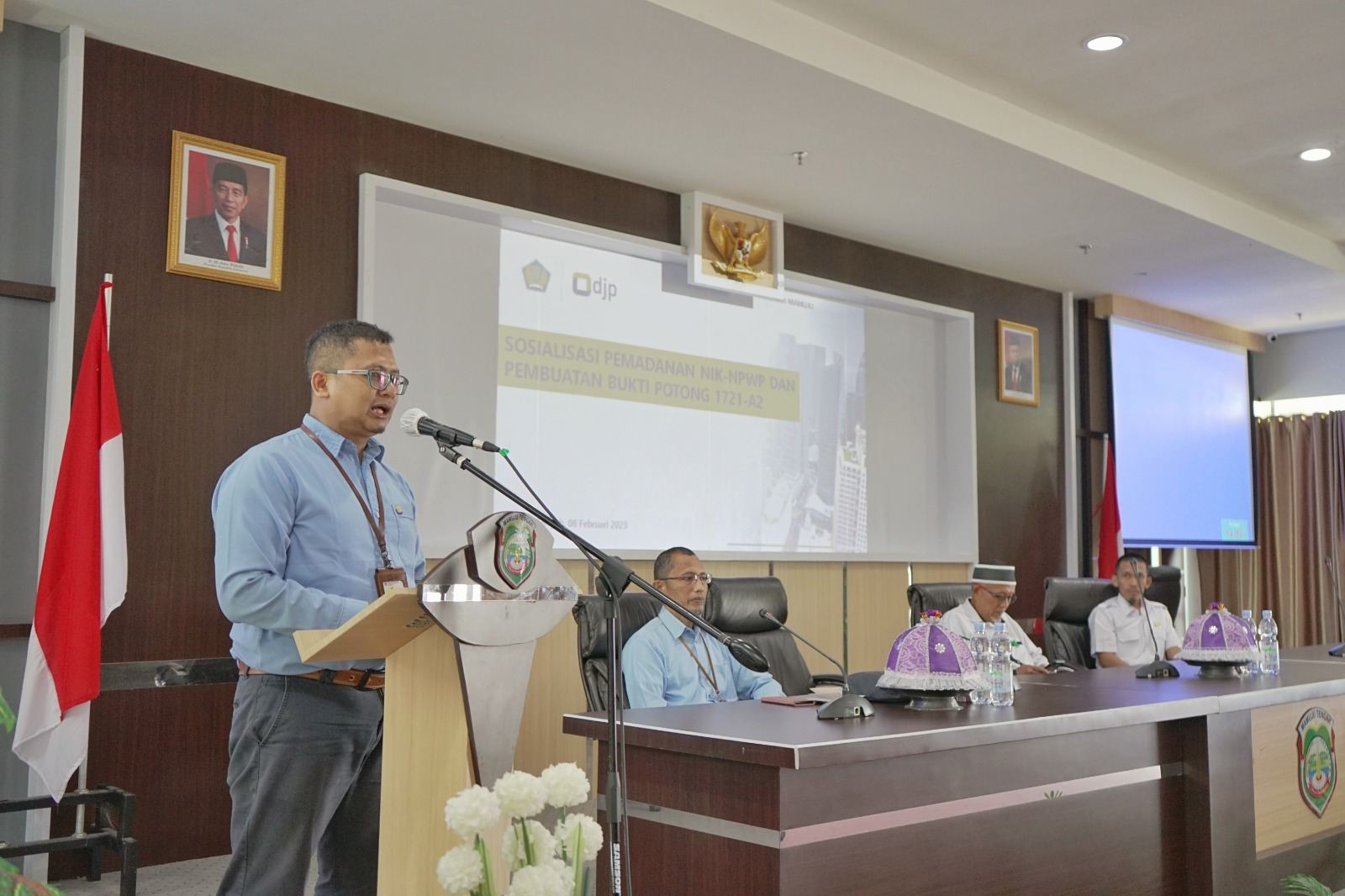 Kantor Pelayanan Pajak (KPP) Pratama Mamuju menggelar acara sosialisasi Pembuatan Bukti Potong Formulir 1721-A2 dan Pemadanan Nomor Induk Kependudukan (NIK) sebagai Nomor Pokok Wajib Pajak (NPWP) yang diselenggarakan di Aula Kantor Bupati Mamuju Tengah. Peserta dalam sosialisasi kali ini merupakan Bendahara Instansi Pemerintah pada Kabupaten Mamuju Tengah (Rabu, 8/2).