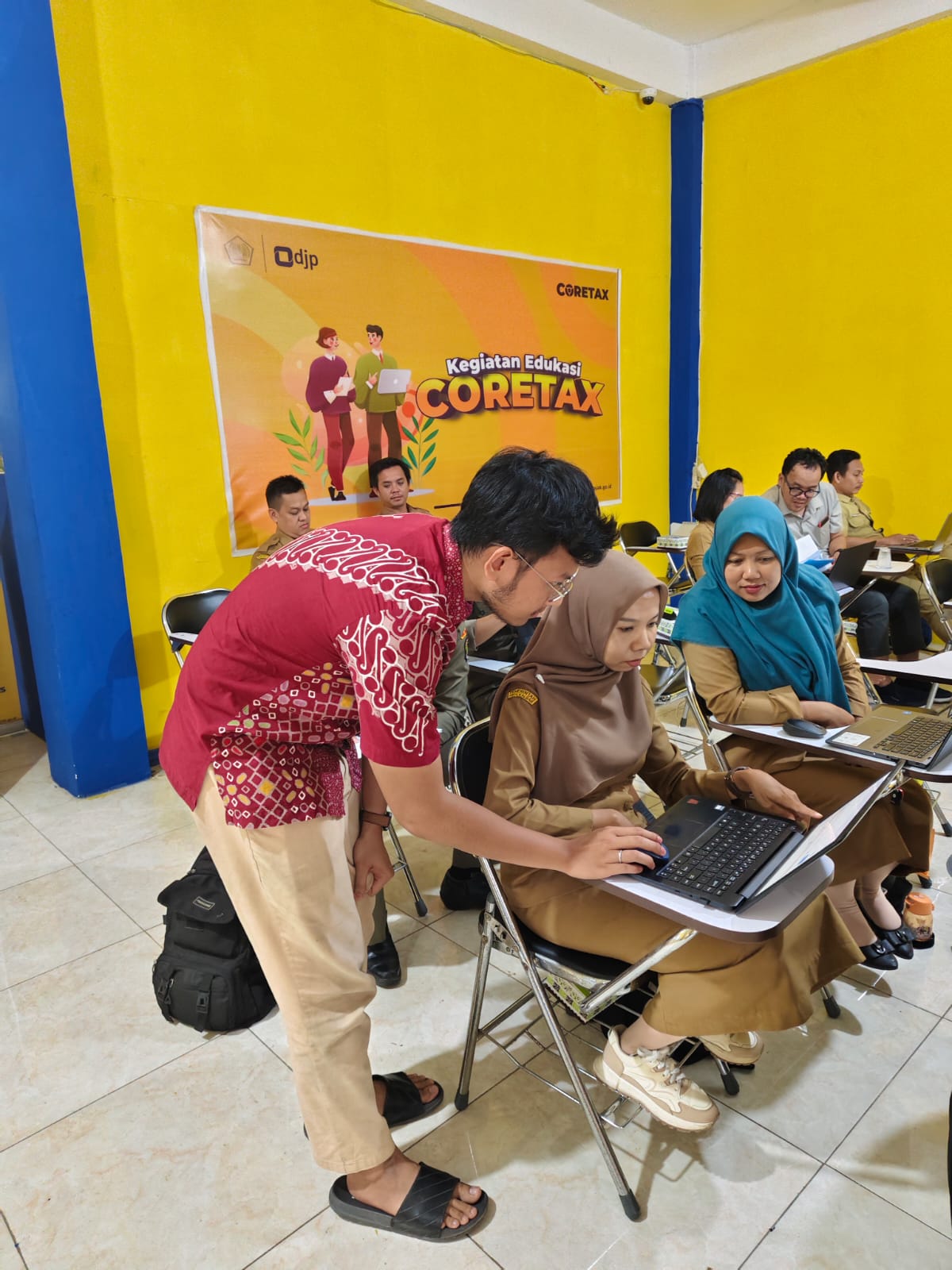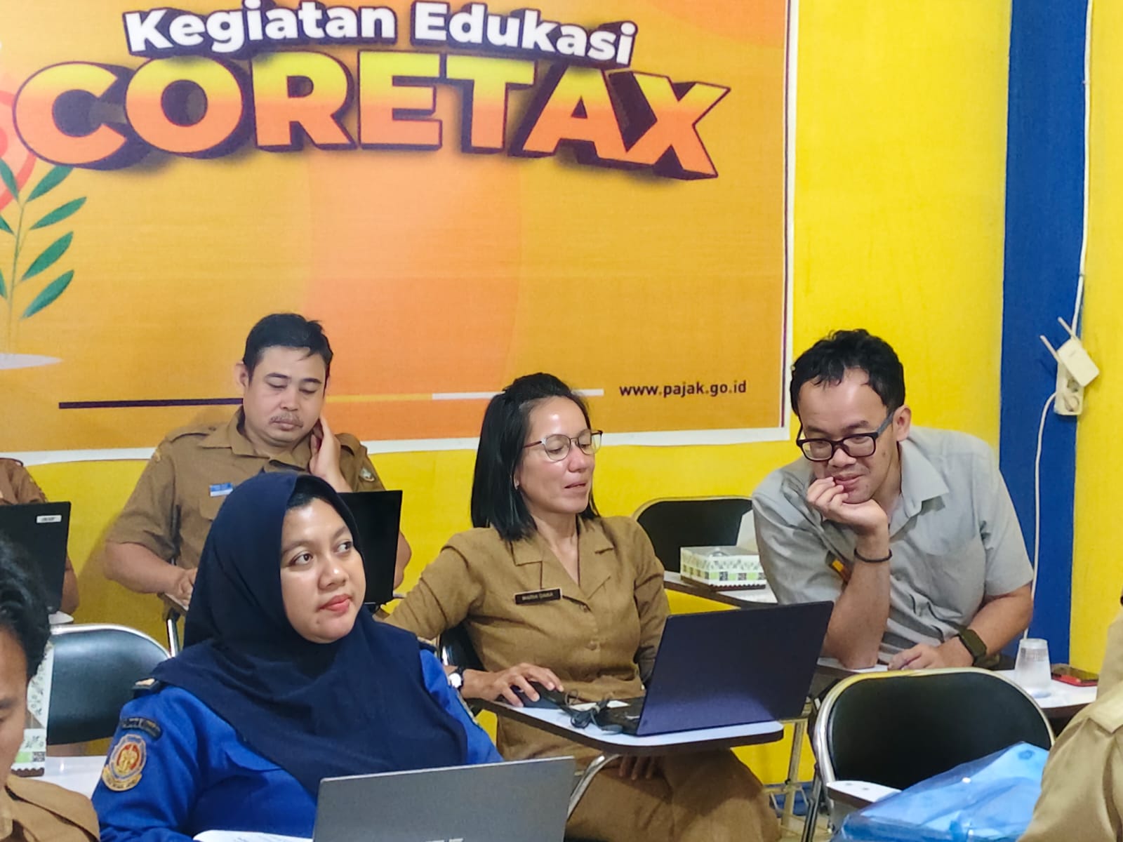 Acara dilanjutkan dengan asistensi pelaporan SPT masa oleh penyuluh pajak dan diskusi terkait kasus-kasus dan/atau kendala teknis yang sering dihadapi oleh bendahara kecamatan dalam menggunakan Coretax DJP.