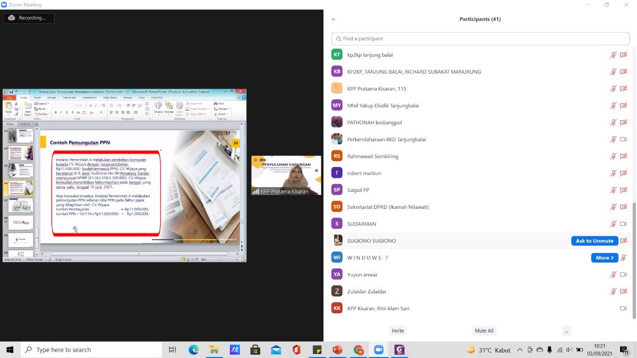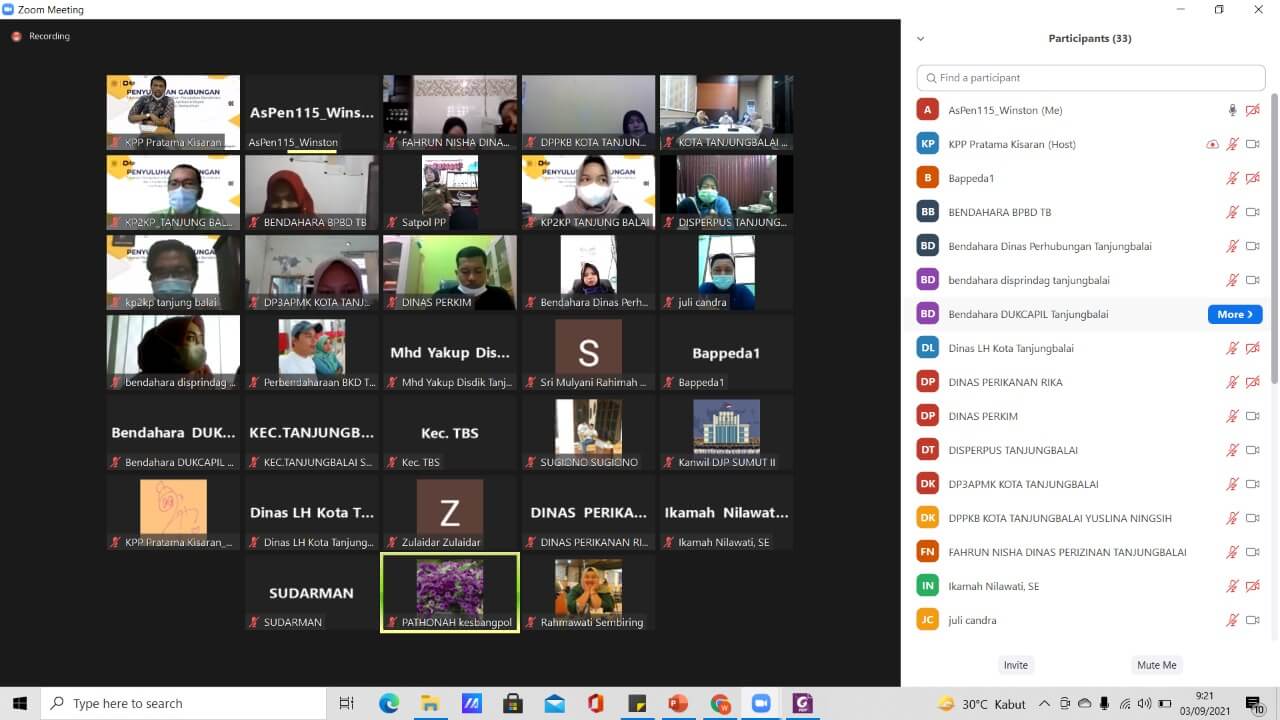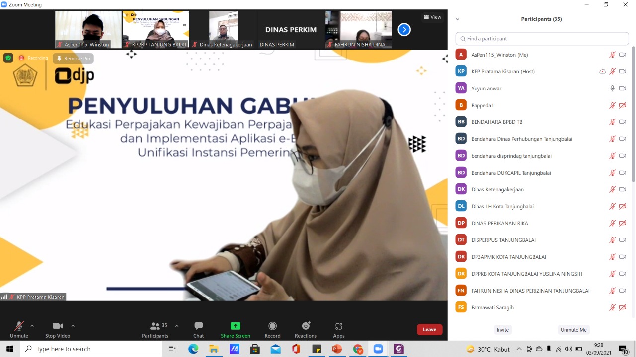 Kantor Pelayanan Pajak (KPP) Pratama Kisaran melaksanakan sosialisasi penggunaan aplikasi e-Bupot pada instansi pemerintah secara virtual melalui aplikasi Zoom Meeting di KPP Pratama Kisaran, Kabupaten Asahan, Sumatera Utara (Jumat, 3/9). Kegiatan diikuti oleh bendahara Organisasi Perangkat Daerah (OPD) di lingkungan Kota Tanjung Balai.