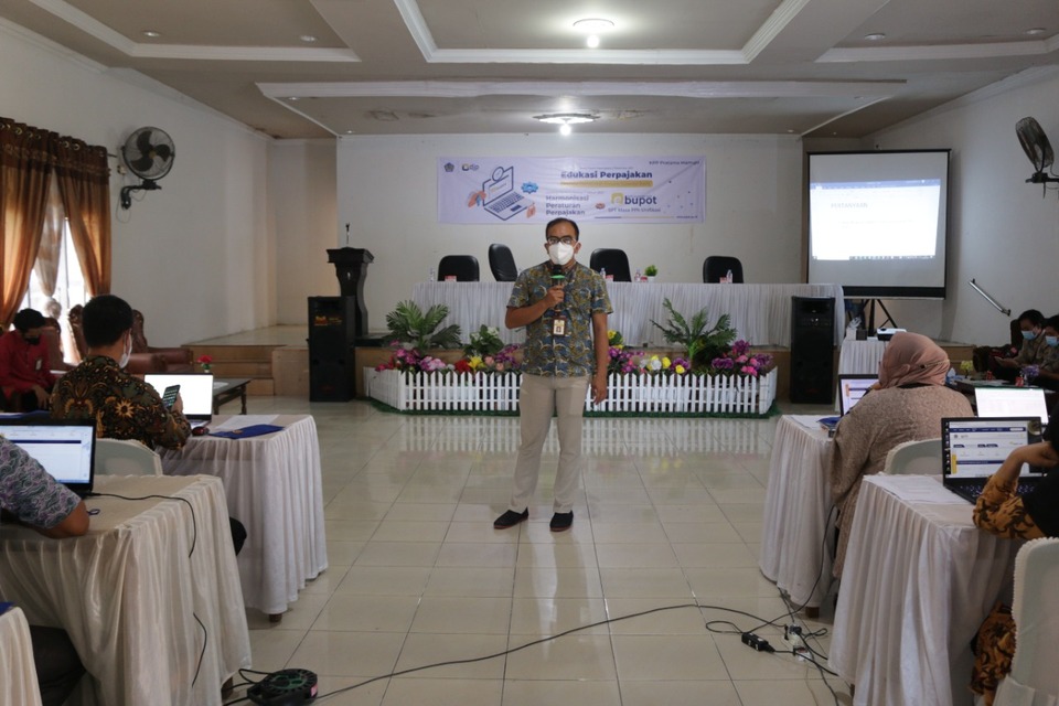 Kantor Pelayanan Pajak (KPP) Pratama Mamuju bekerja sama dengan Kantor Pelayanan, Penyuluhan, dan Konsultasi Perpajakan (KP2KP) Pasangkayu menyelenggarakan kegiatan Bimbingan Teknis e-Bupot SPT Masa Unifikasi yang diikuti Bendahara Pemerintah se-Provinsi Sulawesi Barat (Kamis, 2/12). Acara ini diselenggarakan secara tatap muka di Hotel Trisakti, Kabupaten Pasangkayu.