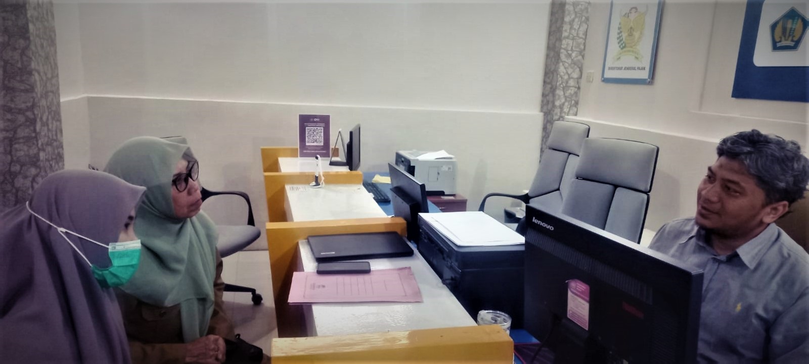 Kantor Pelayanan, Penyuluhan, dan Konsultasi Perpajakan (KP2KP) Sinjai menerima konsultasi Wajib Pajak Bendahara Rumah Sakit Umum Daerah (RSUD) Sinjai terkait kelebihan perhitungan Pajak Penghasilan (PPh) Tarif Efektif Rata-rata (TER) atas penghasilan dokter di Tempat Pelayanan Terpadu (TPT) KP2KP Sinjai, Kelurahan Biringere, Kecamatan Sinjai Utara, Kabupaten Sinjai (Selasa, 3/12).