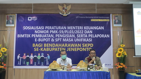 Kegiatan ini dihadiri langsung oleh Kepala KPP Pratama Bantaeng Friday Glorianto, Kepala BPKAD Kabupaten Jeneponto H. Armawih A. Paki, Kepala KP2KP Bontosunggu Aries Harto Malik dan seluruh Bendaharawan atau Pengelola Keuangan SKPD Kabupaten Jeneponto.