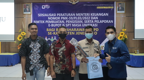 Kantor Pelayanan, Penyuluhan, dan Konsultasi Perpajakan (KP2KP) Bontsosunggu bersama Kantor Pelayanan Pajak (KPP) Pratama Bantaeng mengadakan kegiatan Sosialisasi dan Bimtek kepada Bendaharawan SKPD Jeneponto di Aula KPP Pratama Bantaeng (Kamis, 19/05).