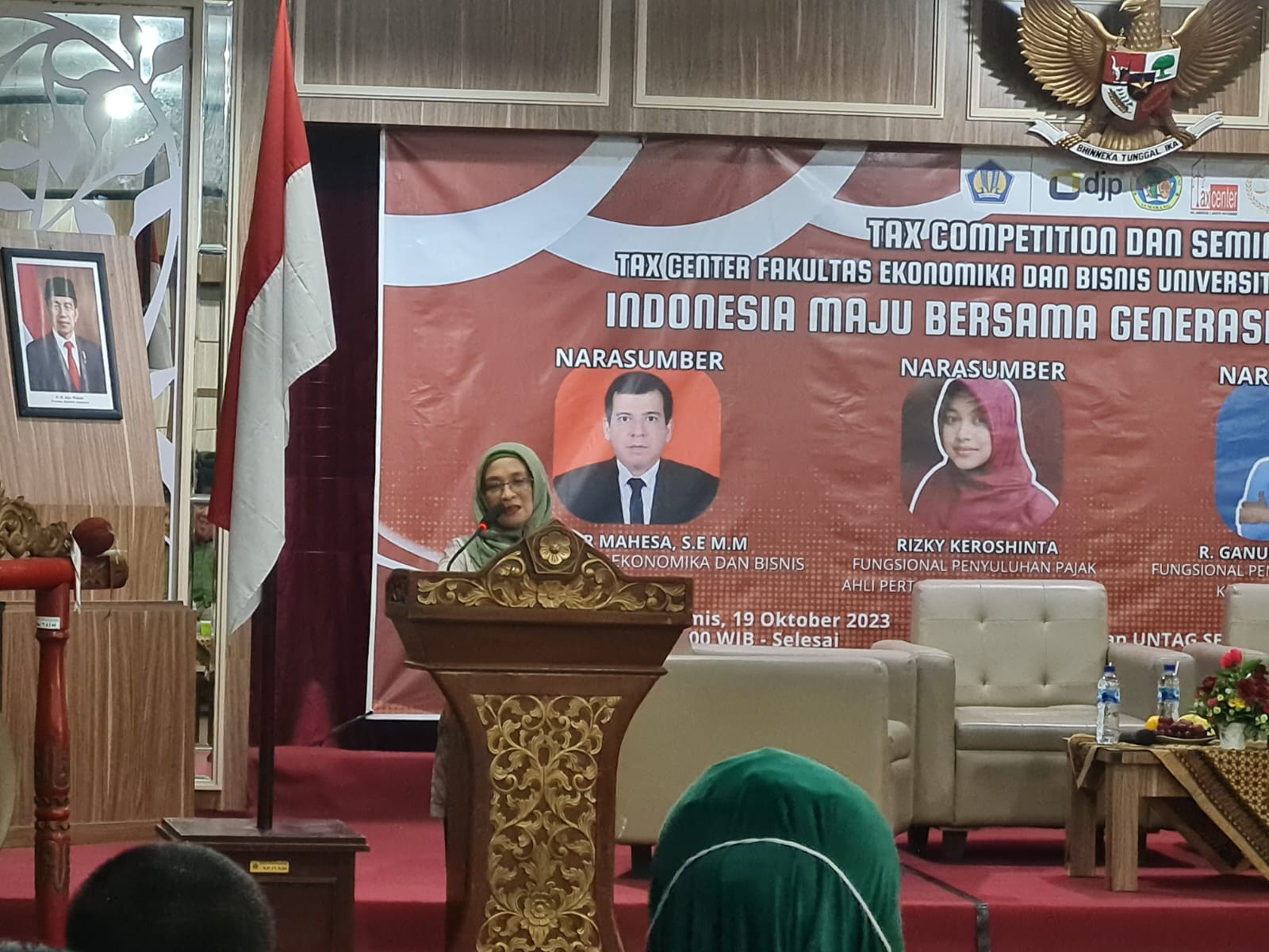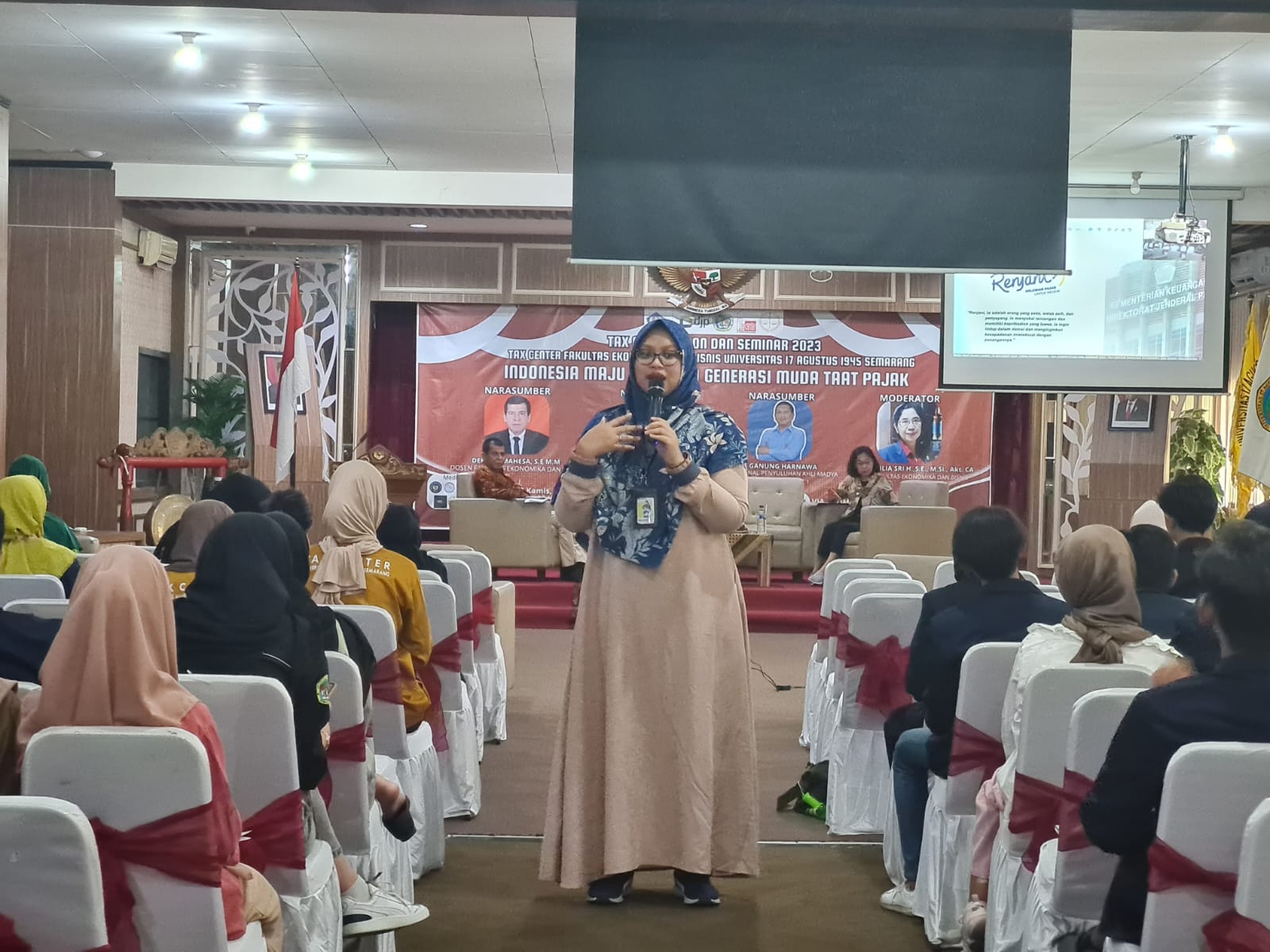 “Hari ini kita berkumpul untuk membahas satu hal yang relevan dengan pembangunan negara yaitu peran pajak dalam memajukan Indonesia,” ungkap Prof. Dr. Emiliana Sri Pujiarti, S.E, M. Si. Wakil Rektor I UNTAG Semarang.