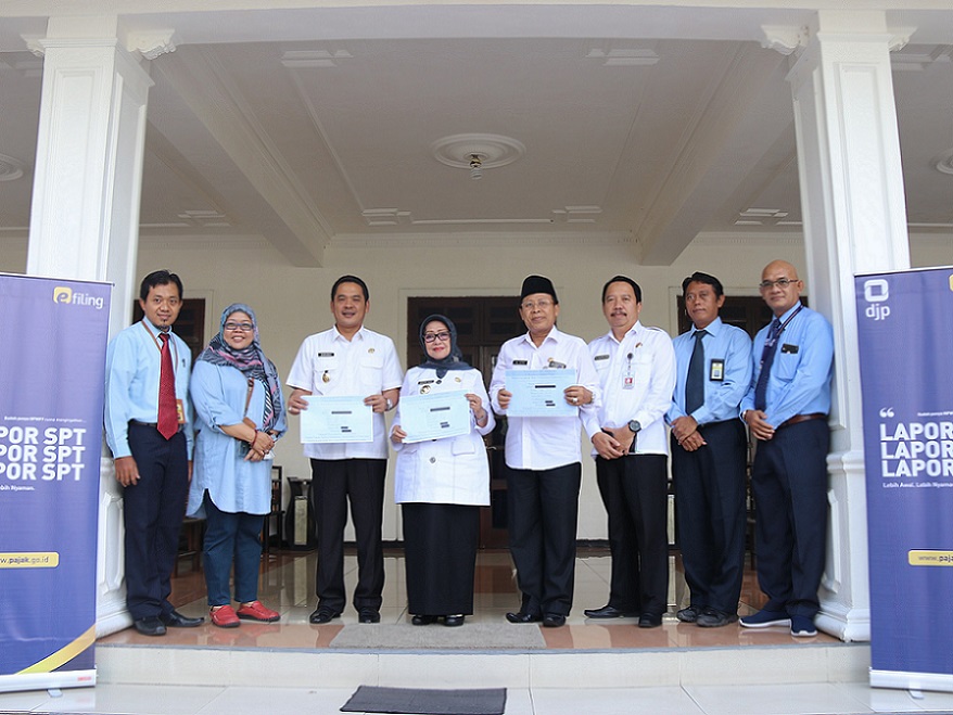 KPP Pratama Jombang malaksanakan asistensi kepada Bupati Jombang Hj. Mundjidah Wahab, Wakil Bupati Jombang Sumrambah, dan Sekretaris Daerah Kabupaten Jombang Akh. Jazuli dalam melakukan pengisian dan pelaporan SPT Tahunan PPh Orang Pribadi melalui e-Filing di Pendopo Kabupaten Jombang (Rabu, 11/3). Kegiatan ini dihadiri oleh Bupati, Wakil Bupati, Sekretaris Daerah Kab. Jombang, Kepala KPP Pratama Jombang, dan beberapa Kepala Seksi KPP Pratama Jombang.