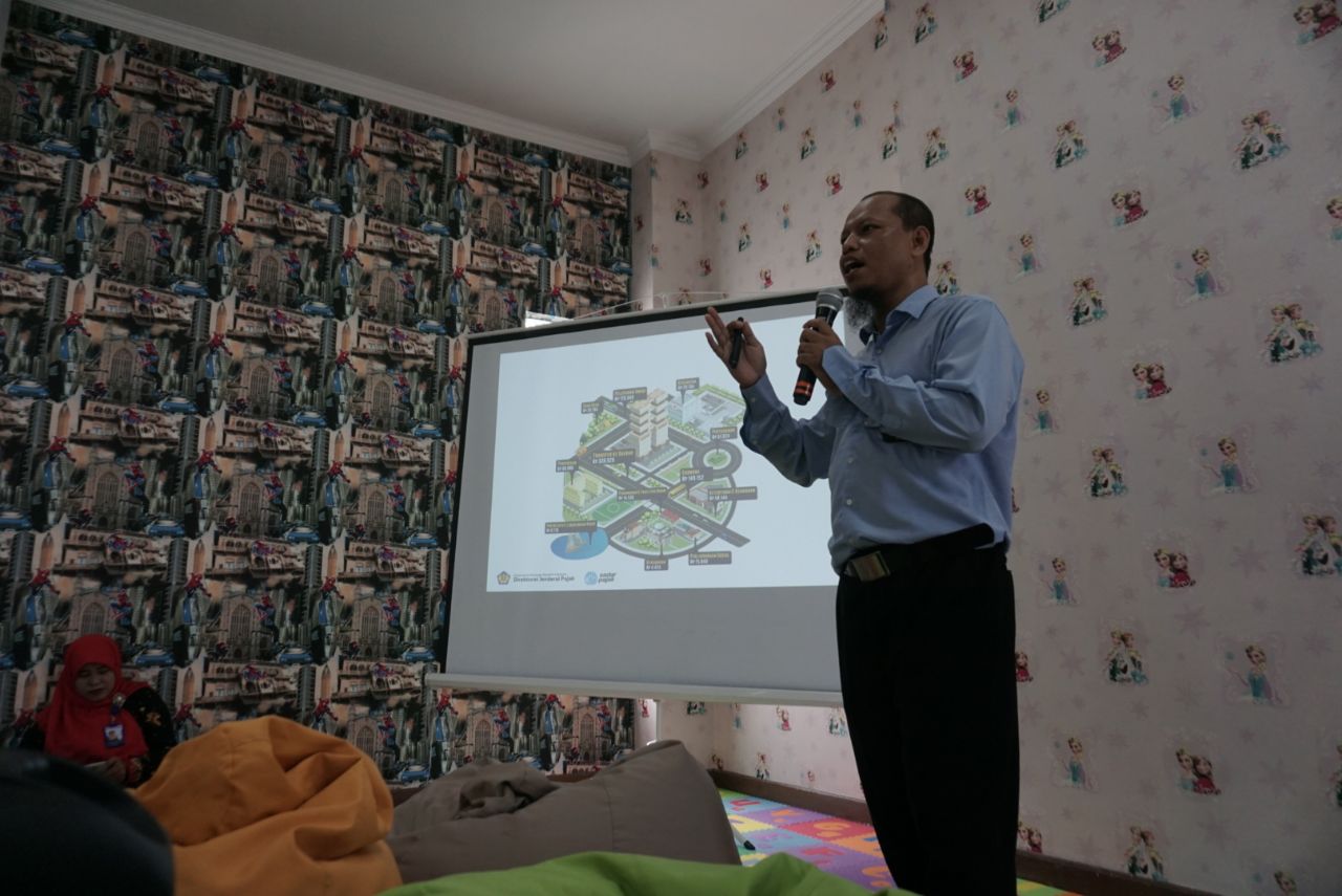 Setelah selama kurang lebih 30 menit mengikuti office tour, para mahasiswa dikumpulkan di Ruang Arjuna untuk menerima materi Kesadaran Pajak. Materi disampaikan oleh fasilitator program Inklusi Kesadaran Pajak Sutarmo dan Wiwin Mardjiyati.