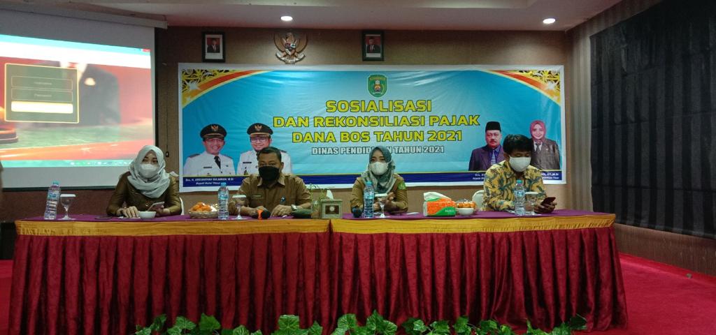 Dinas Pendidikan Kabupaten Kutai Timur mengundang Kantor Pelayanan Pajak (KPP) Pratama Bontang untuk menjadi narasumber dalam kegiatan Sosialisasi dan Rekonsiliasi Pajak Dana Bantuan Operasional Sekolah (BOS) 2021 di Hotel Royal Victoria yang terletak di Jl. A. W. Syahrani No. 1 RT. 04, Teluk Lingga, Sangatta Utara, Kabupaten Kutai Timur (Selasa, 14/12).