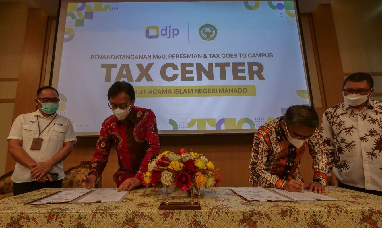 Kantor Wilayah Direktorat Jenderal Pajak Sulawesi Utara, Tengah, Gorontalo, dan Maluku Utara (Kanwil DJP Suluttenggomalut) bersama Institut Agama Islam Negeri (IAIN) Manado melaksanakan kegiatan penandatanganan Kesepakatan Bersama Pembentukan Tax Center ke-21 Kanwil DJP Suluttenggomalut di Aula Teater Lantai 4 IAIN, kota Manado (Kamis, 28/10).