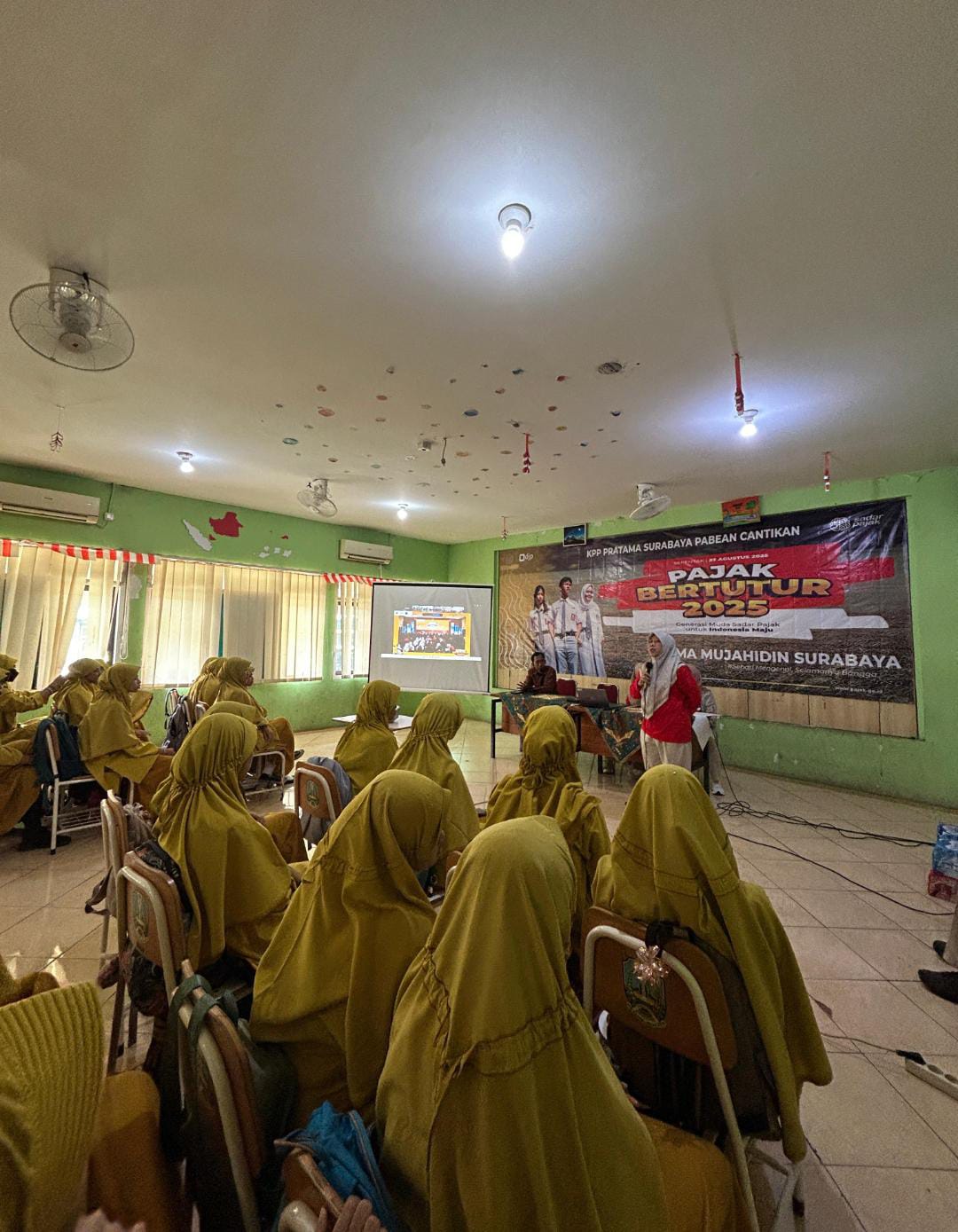 Dalam Pajak Bertutur 2025, KPP Pratama Surabaya Pabean Cantikan secara langsung tatap muka dan dipandu oleh kakak-kakak Penyuluh Pajak di Aula Lantai 2 SMA Mujahidin Surabaya dan diikuti oleh 80 siswa putri dari kelas XI dan XII baik dari jurusan IPA maupun IPS.